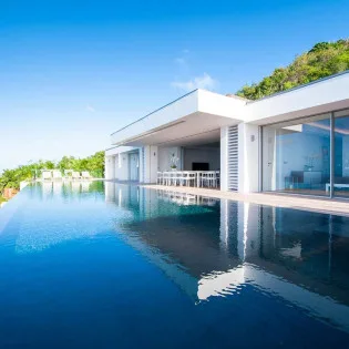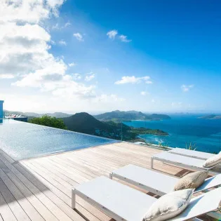 Towering high above Lorient bay, this exquisite and private villa enjoys panoramic views and is within a short drive of several beaches.