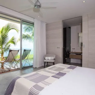 There are 5 bedrooms in total at Villa Ginger, all quiet and tranquil spots to relax – ideal for recharging each evening. Each room has a Euro king-sized bed, a TV with U.S. satellite channels, and an ensuite bathroom. The showers in each bathroom open to the outside, where each bedroom enjoys a private little garden.
