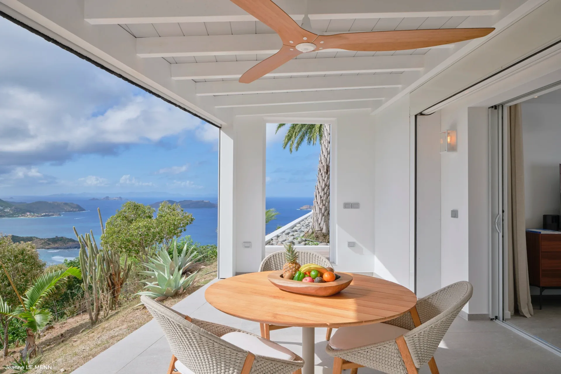 From everywhere, the unobstructed views are breathtaking. The panoramic vistas take in the islands of Île Toc Vers, Île Frégate, and Île Bonhomme, while in the distance is Saba, St. Martin, and Anguilla.