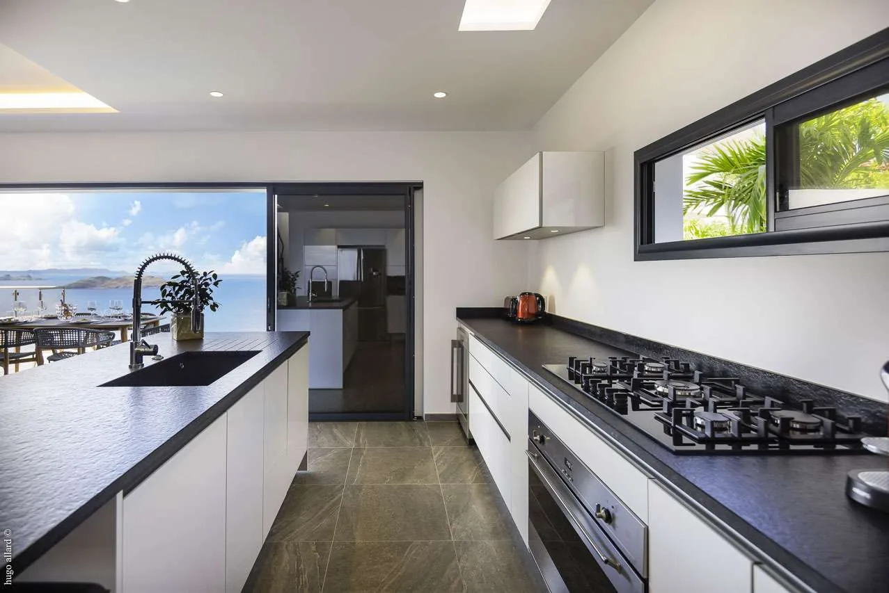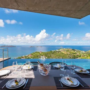 When it’s time to dine, whisking your plates outside to the dining table lets you enjoy your meal while immersed in the natural beauty of this tropical paradise. Everything tastes better when you’re gazing out at the Caribbean and the gentle undulating hills of St. Barts between the crescent bays.