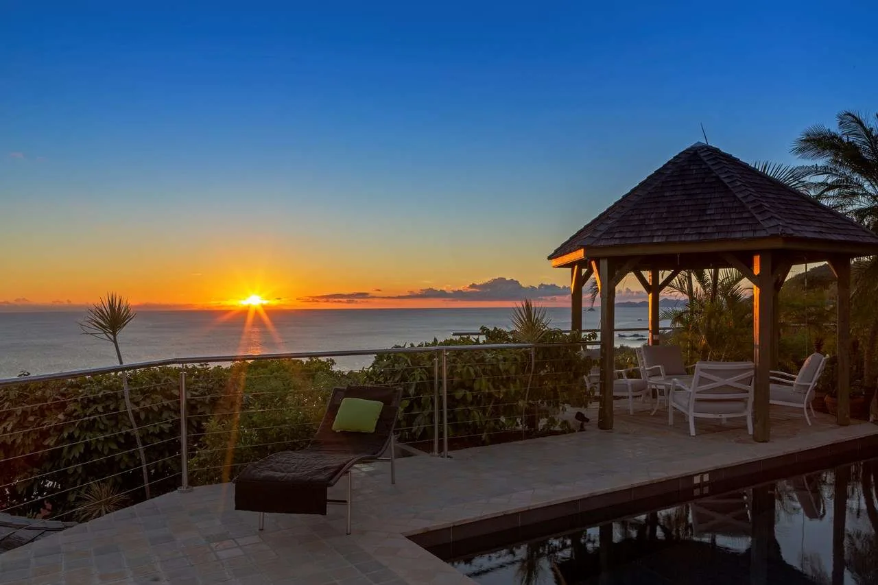 Nestled on the leeward side of the island, this villa enjoys stunning ocean and sunset views.