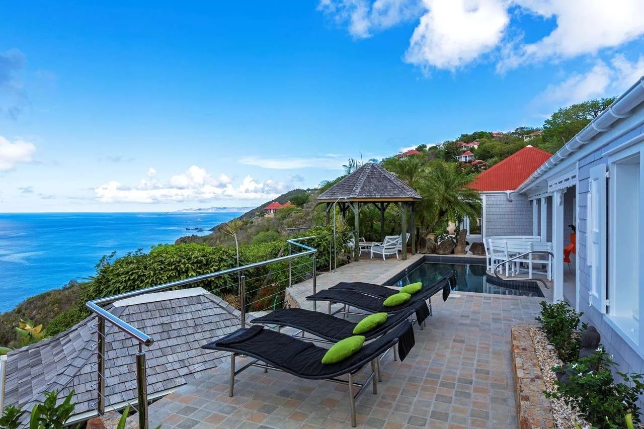 From its lofty locale, Villa Grain De Folie enjoys stunning views over the outer harbor of Gustavia and the Caribbean sea. Flamands and Corossol beaches are both just a short drive away, while shops and restaurants in Gustavia and St. Jean are less than 10 minutes away by car