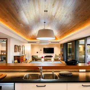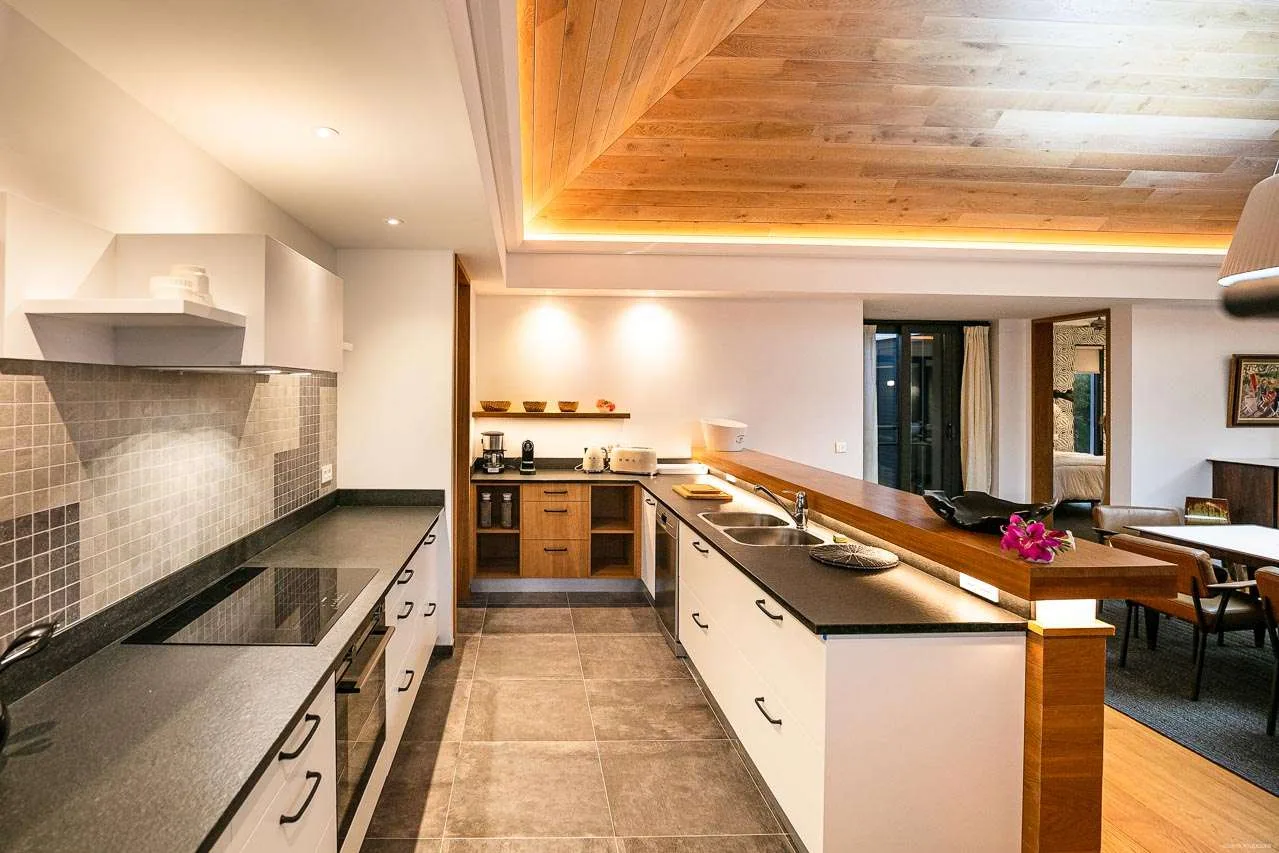 The spacious, fully air-conditioned apartment with its modern classic decor, has a large main room including a fully equipped, gourmet kitchen, a dining area and the living, which has comfortable seating and a large screen.