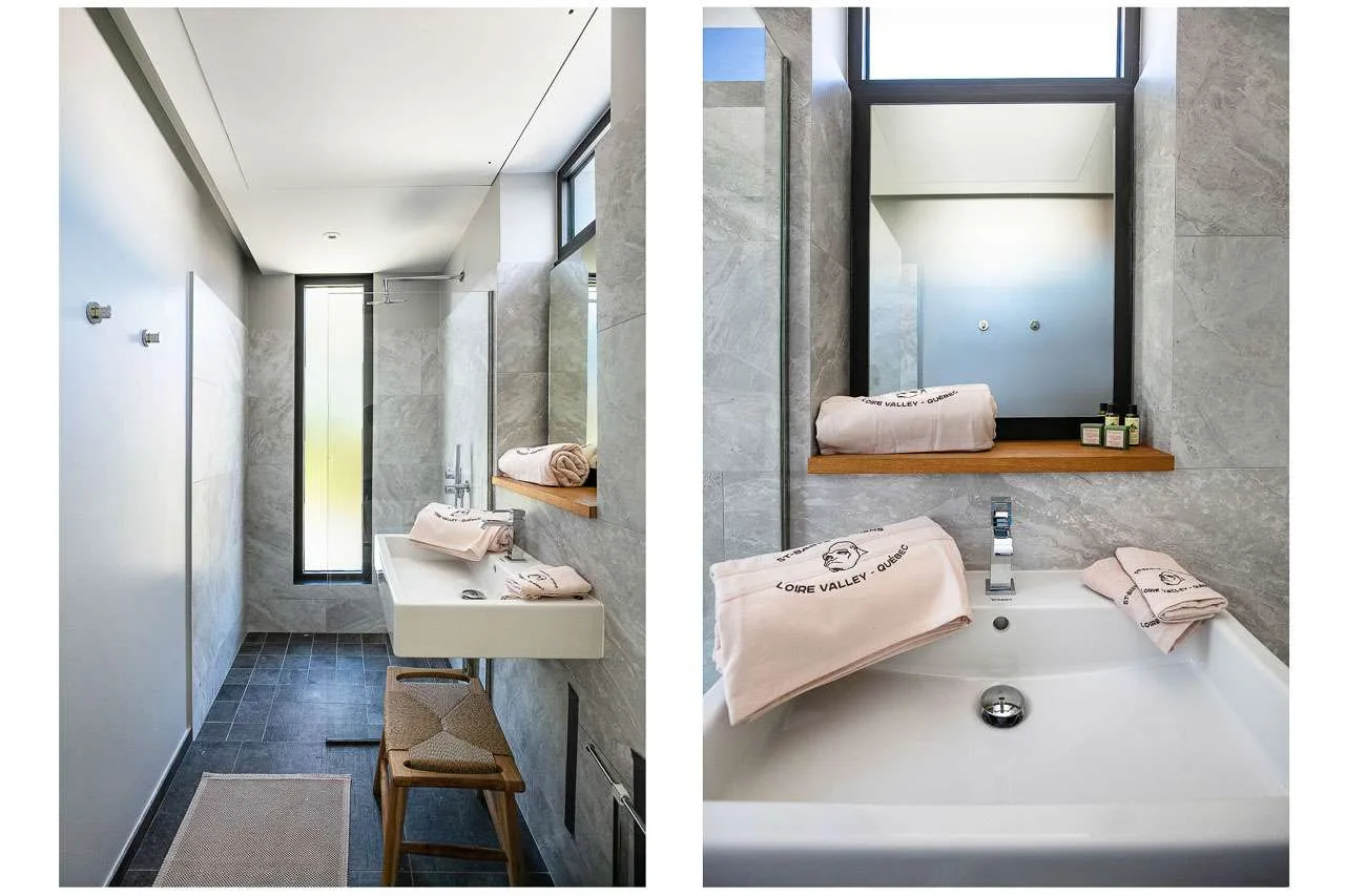 The master bedroom, situated next to the terrace with harbor views has a U.S. king-sized bed, large, his-and-hers closets, and an ensuite bathroom with shower. The two guest rooms are situated in the back of the living room and have city views. Each has a U.S. king-sized bed, ample closet space, and an ensuite bathroom with a shower.