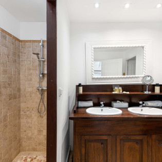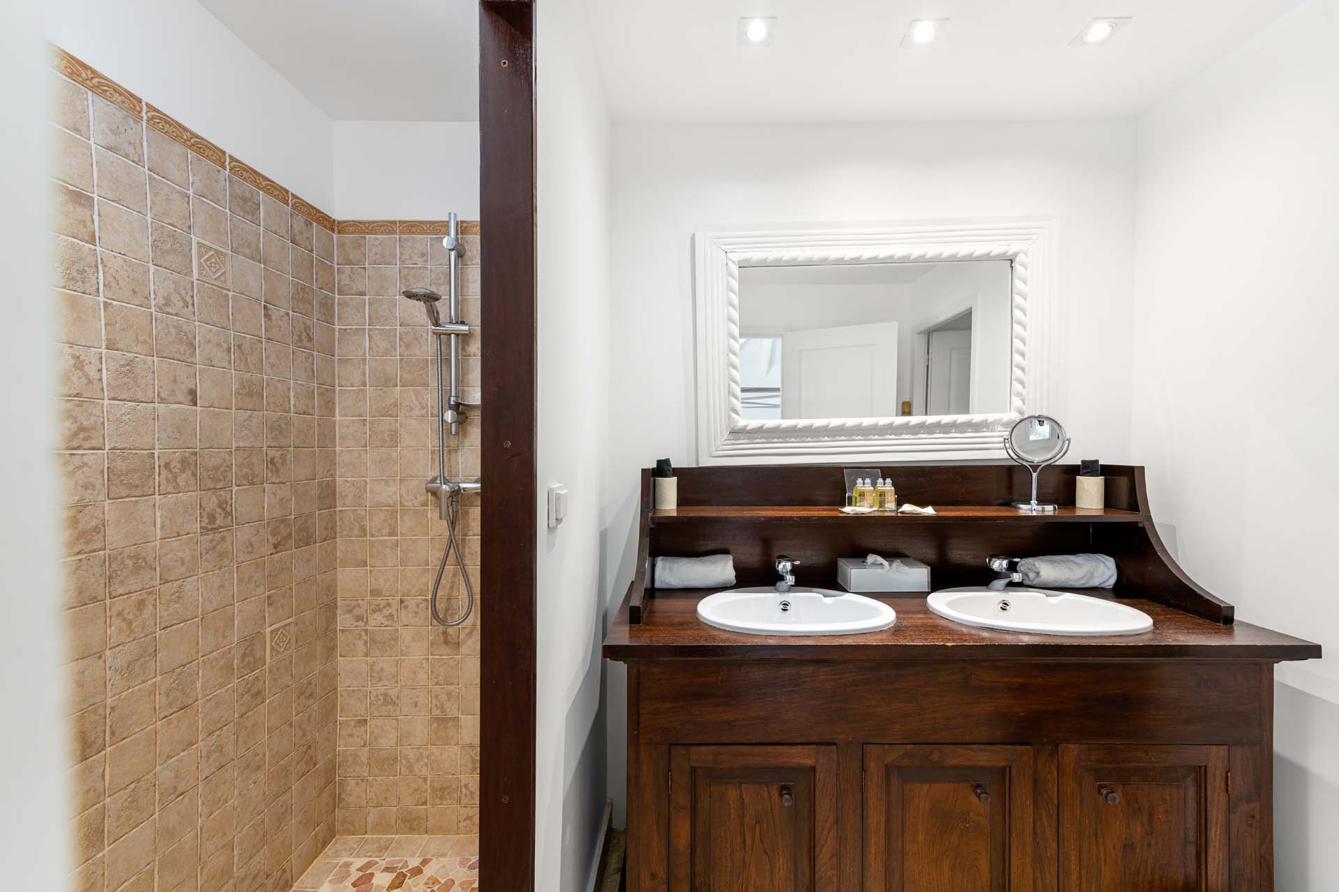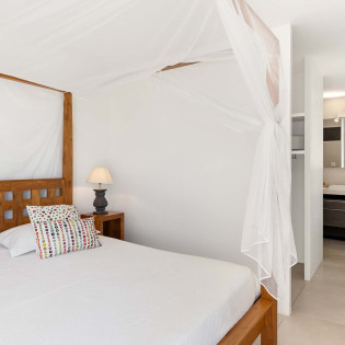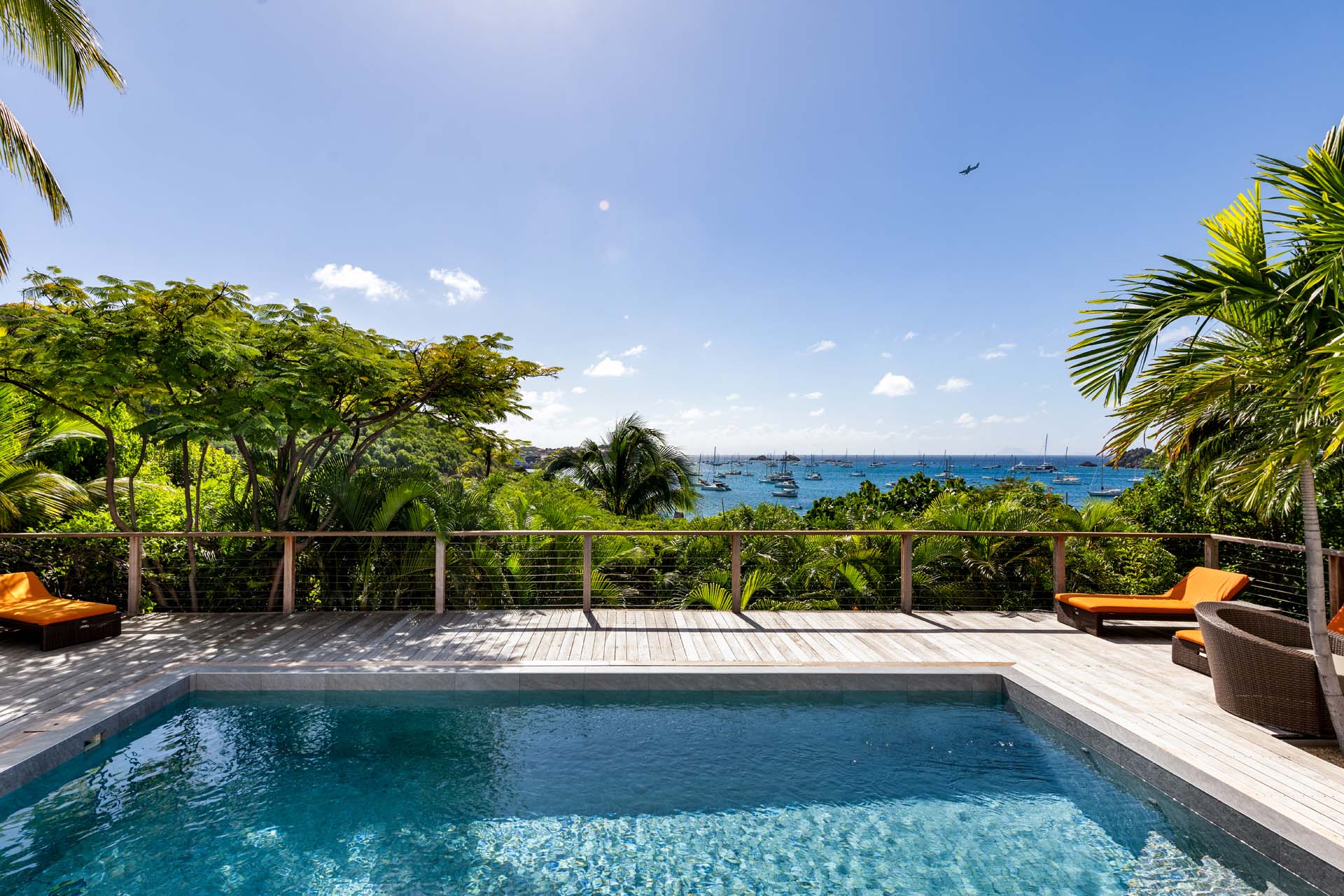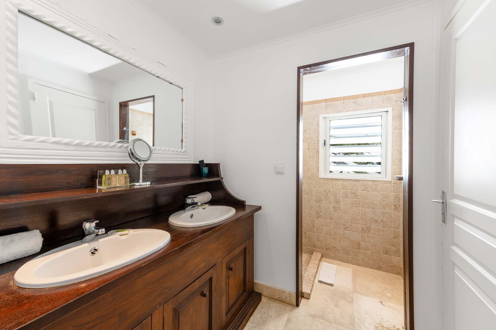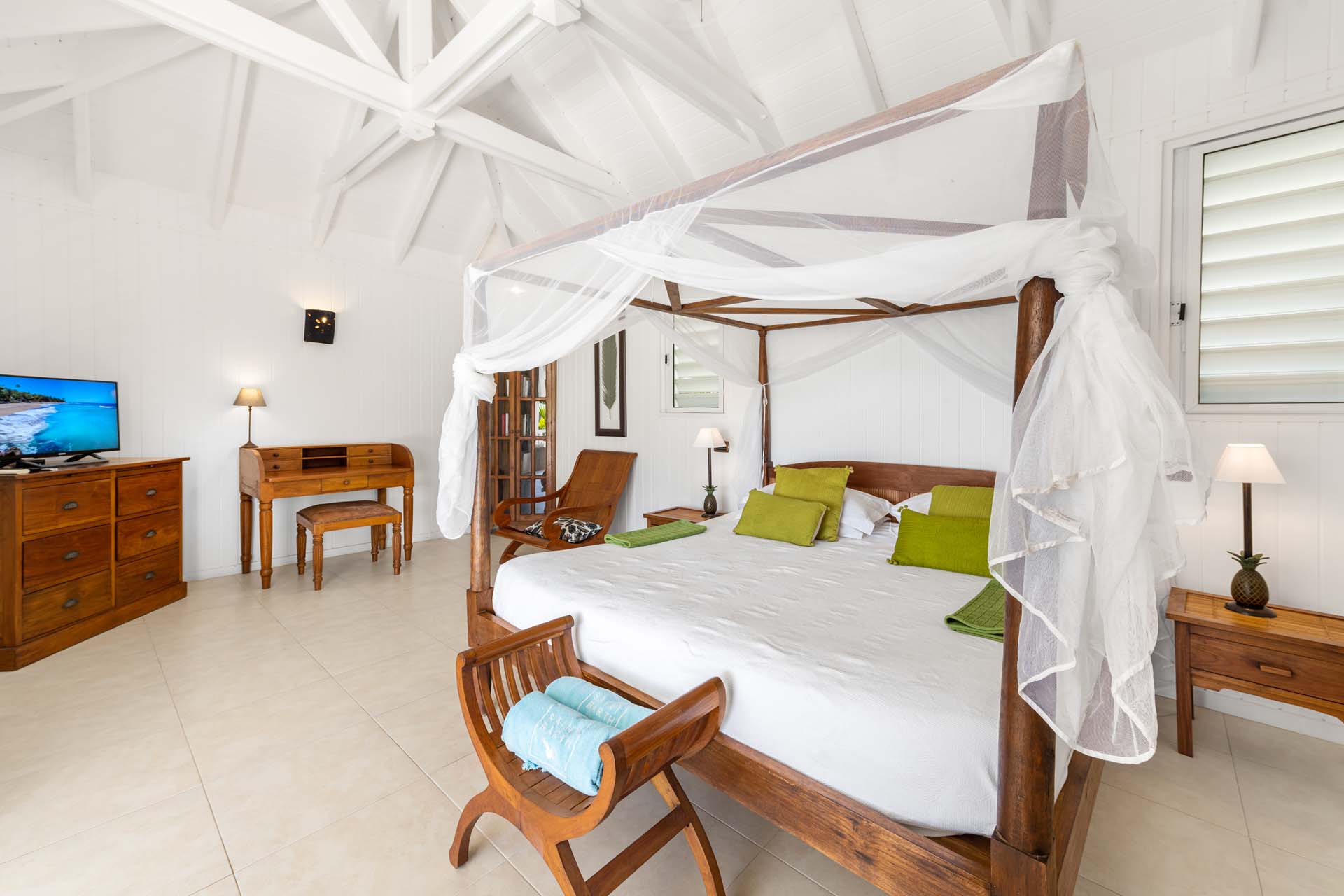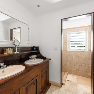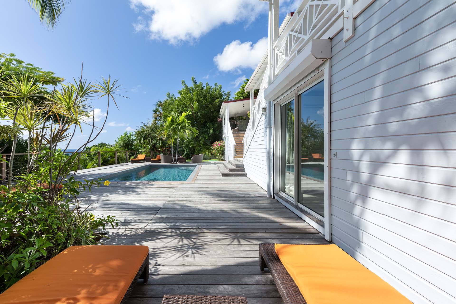 Villa Habitation Saint Louis can be rented with the villa next door, Villa Petite Saint Louis (villa code: WV PSL), for a total of 5 bedrooms. It features a king bedroom with an ensuite bathroom, an outdoor covered terrace as well as a kitchenette, a swimming pool, and a great view.