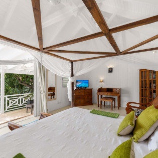 A deck with loungers and a large day bed surround the pool, making this an ideal spot for reading poolside or sunbathing. Lush, tropical gardens surround the property. A private footpath from the villa leads to the beach.