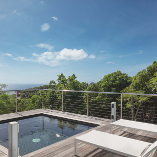 The 180-degree views from Villa Jasmine are simply breathtaking, combining sea views, lush vegetation, and rocky outcrops to create an unparalleled visual experience.