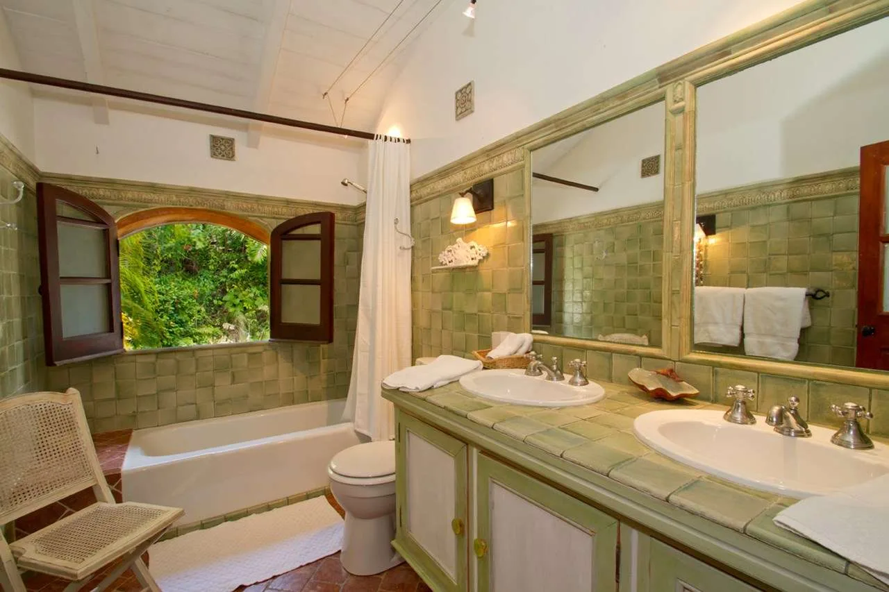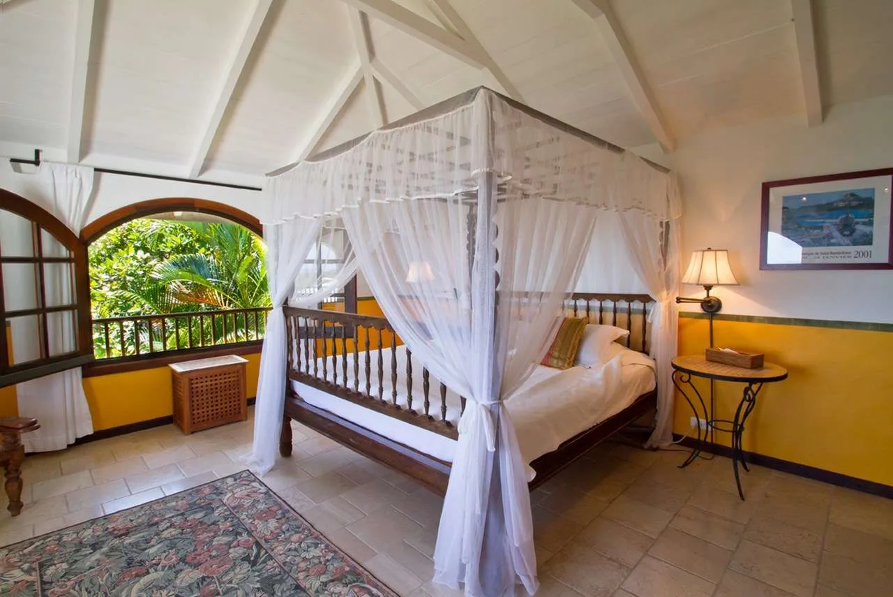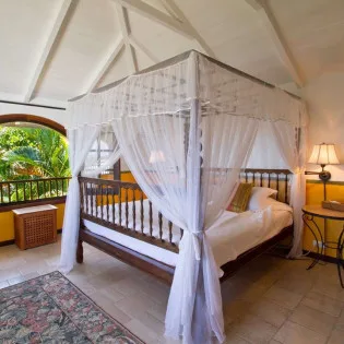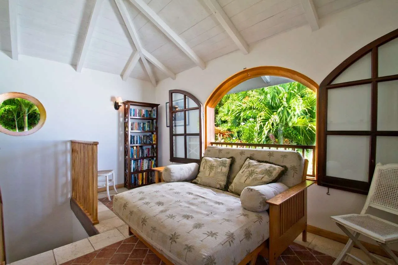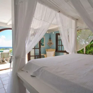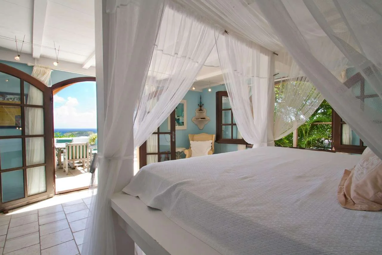 Ascending upstairs leads you to the second bedroom. This space also has a king-sized bed and ensuite bathroom, as well as stunning views over the shimmering Caribbean.