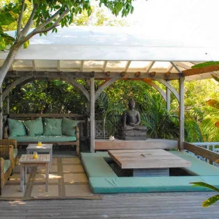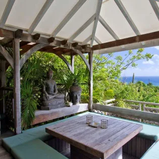 Secluded amongst the lush foliage, Villa Kyody offers peerless privacy in one of St. Barts’ more tranquil neighborhoods. Beaches and restaurants at Grand Cul-de-Sac Bay are just a 10-minute walk away.