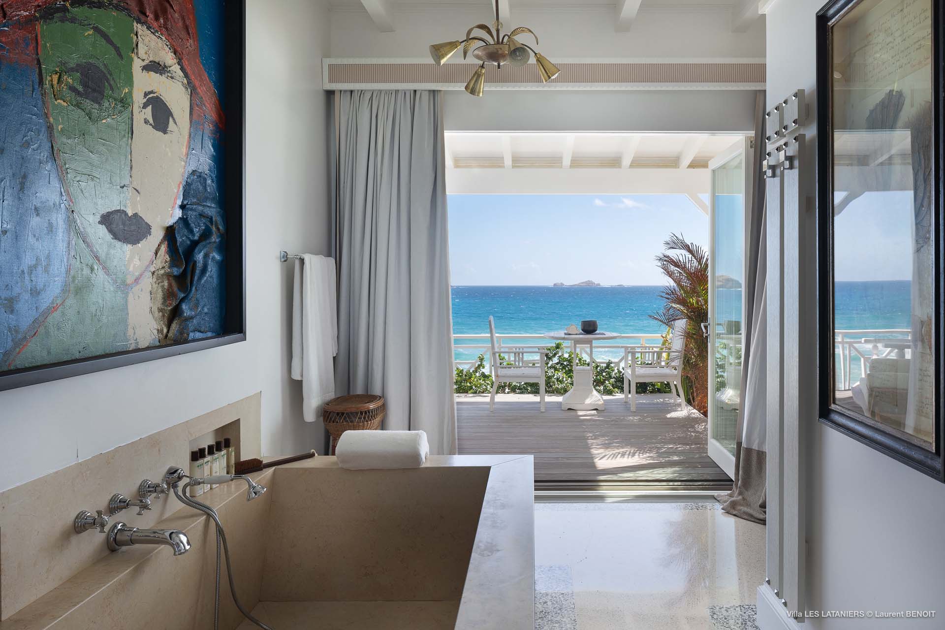 Villa Les Lataniers, (villa code: WV LAT) is a 6+1-bedroom villa located in Anse des Lezards. Perched just above the Anse des Lezards Bay, this large colonial-style estate enjoys panoramic views of the bay and hillsides.
