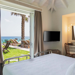 King Bed, A/C, Ceiling Fan, Ensuite Bathroom, U.S. Satellite TV, Safe, Mini bar, Located on the lower level and accessed from the exterior only, Ocean view