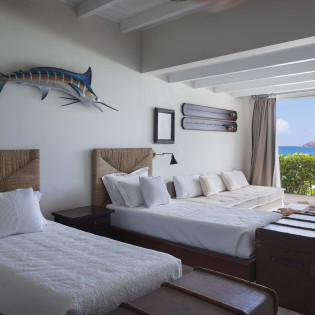 2 Twin Beds, Ensuite Bathroom, TV, U.S. Satellite TV, Sofa Bed, Located on the lower level and accessed via stairs from the living room or from exterior, Ocean view