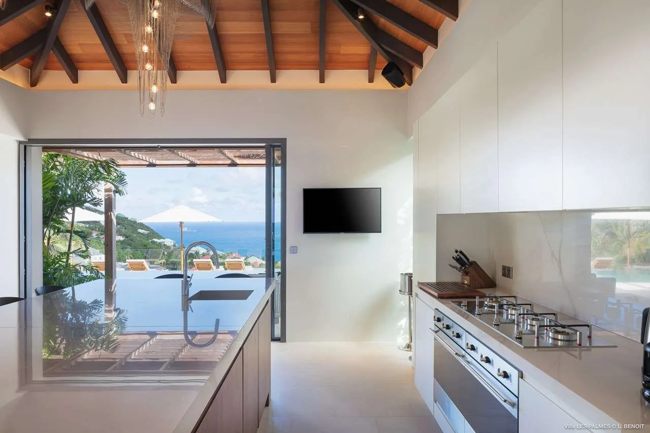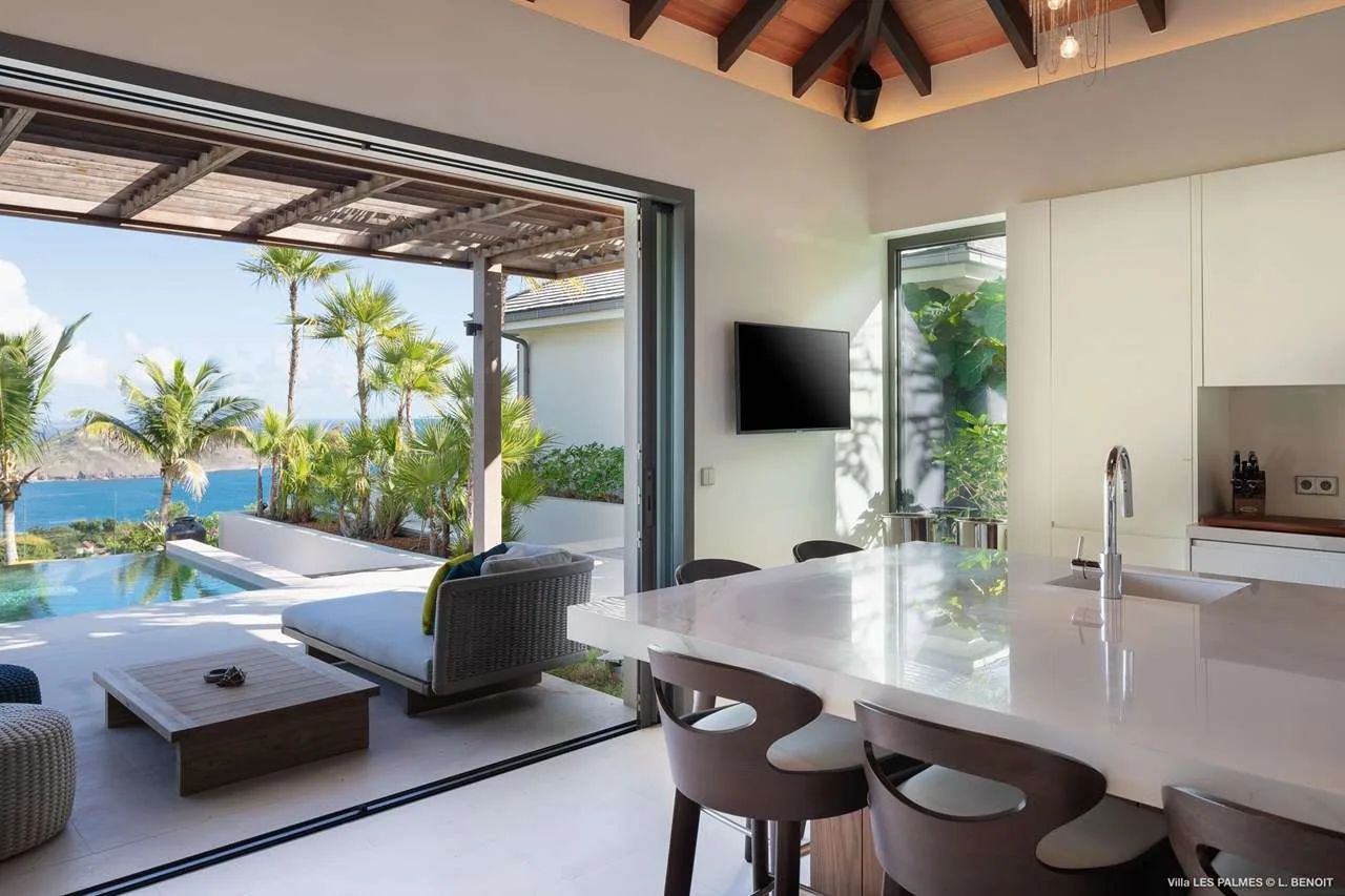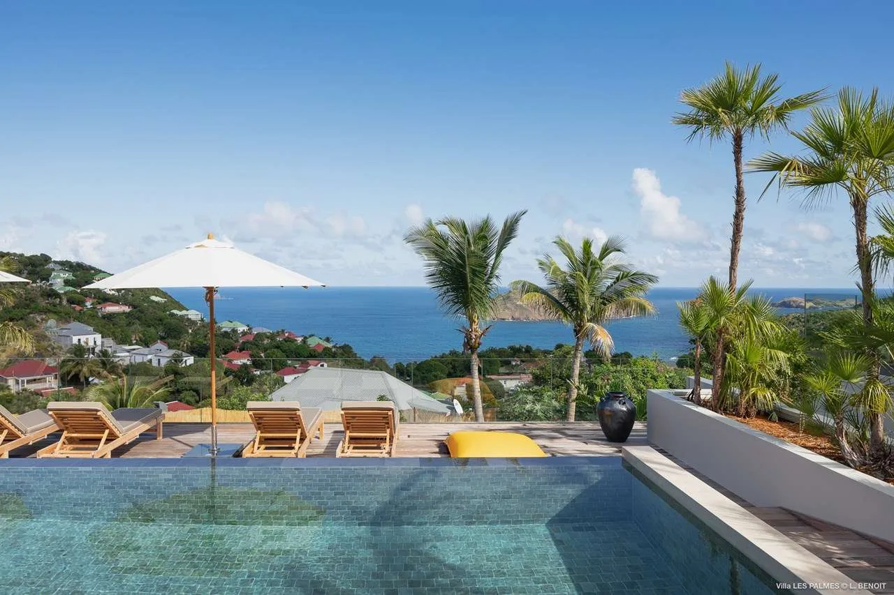 Villa Les Palmes, (villa code: WV LEP) is a newly-built, 5-bedroom villa in the hills of Colombier with lots of privacy and gorgeous ocean views.