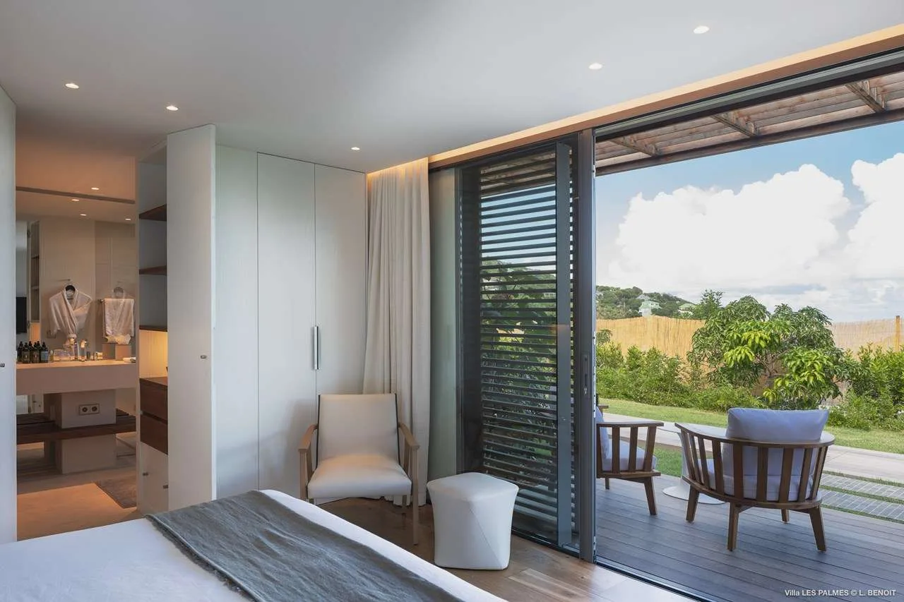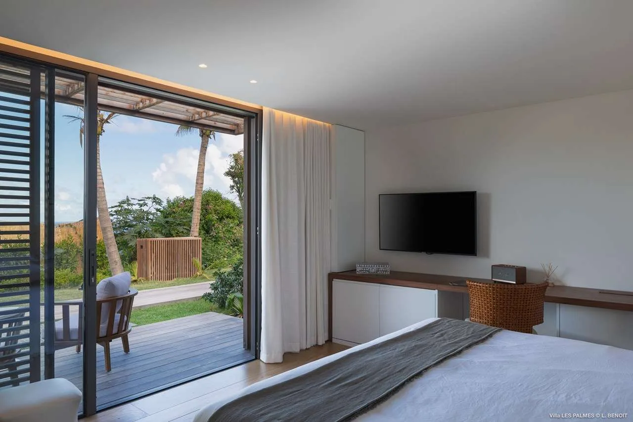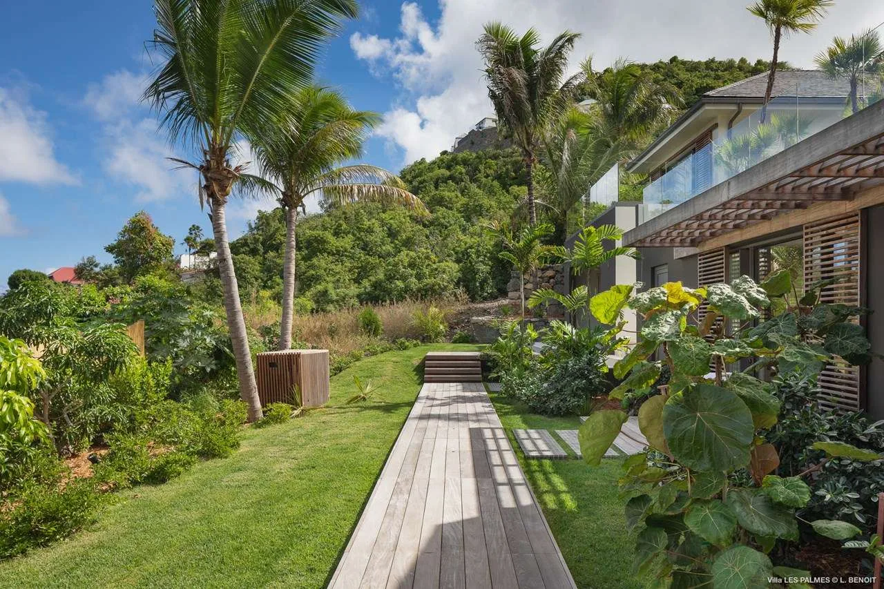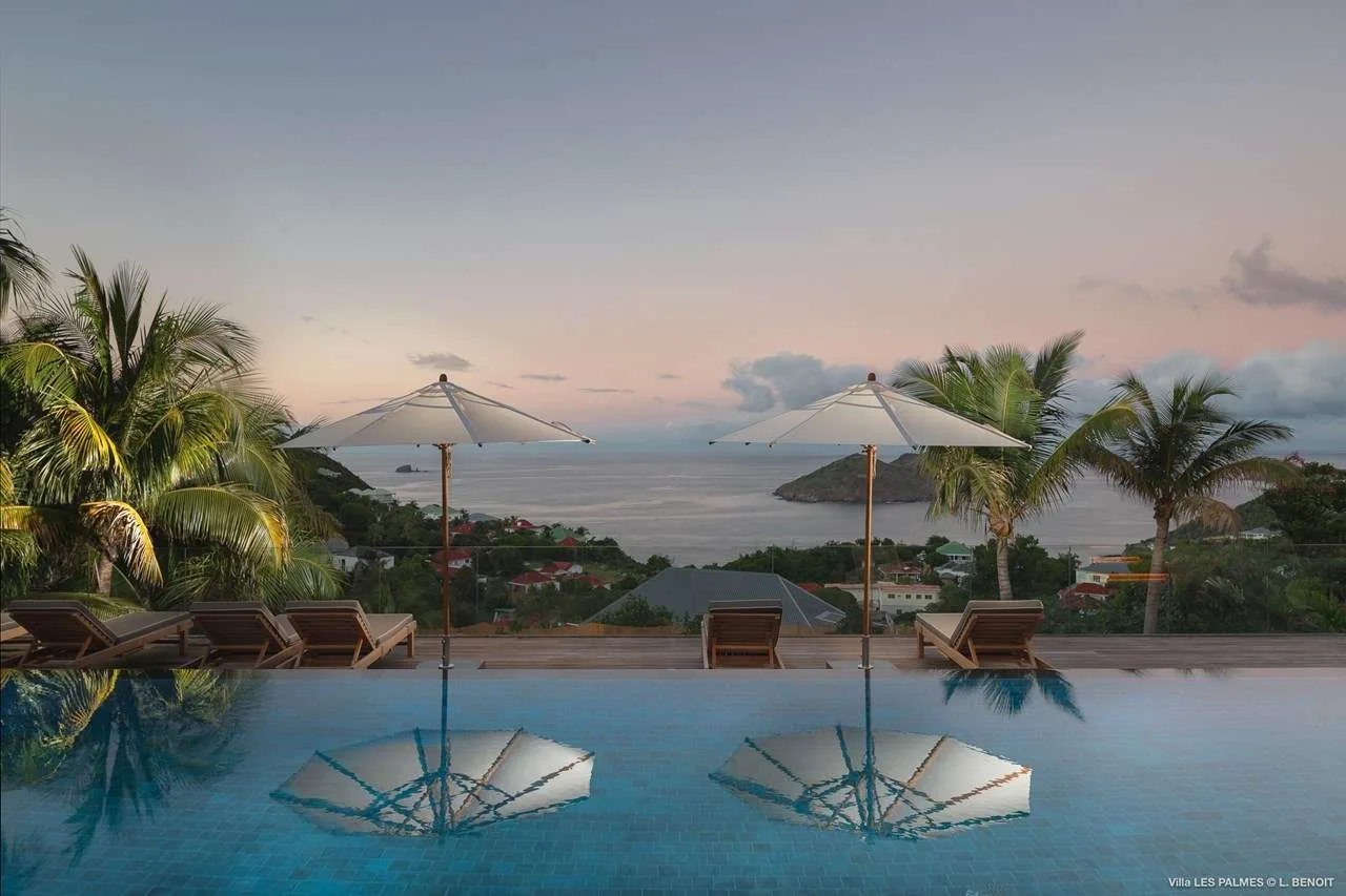 Villa Les Palmes, (villa code: WV LEP) is a newly-built, 5-bedroom villa in the hills of Colombier with lots of privacy and gorgeous ocean views.