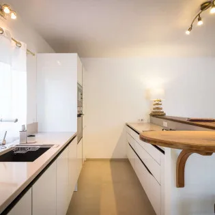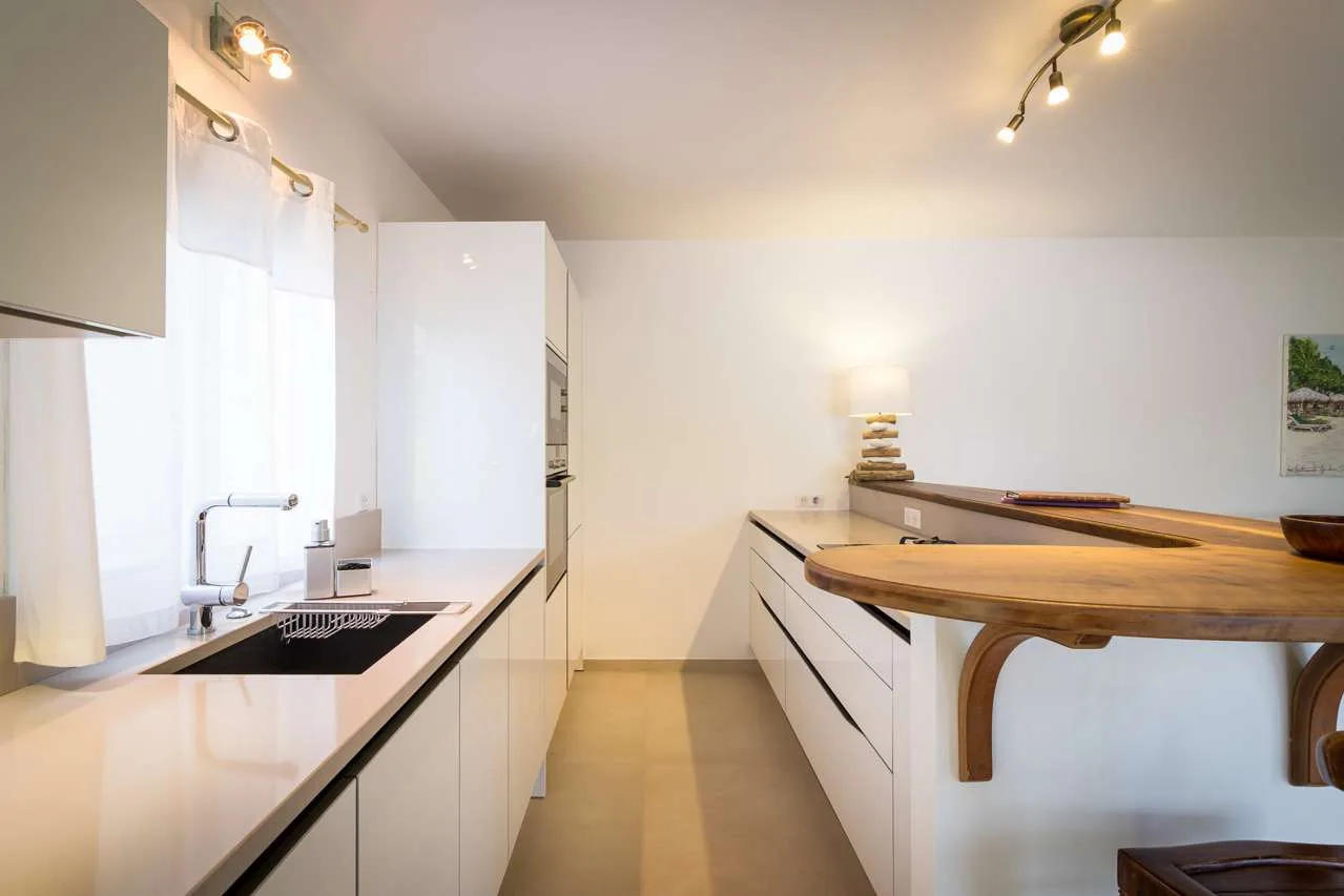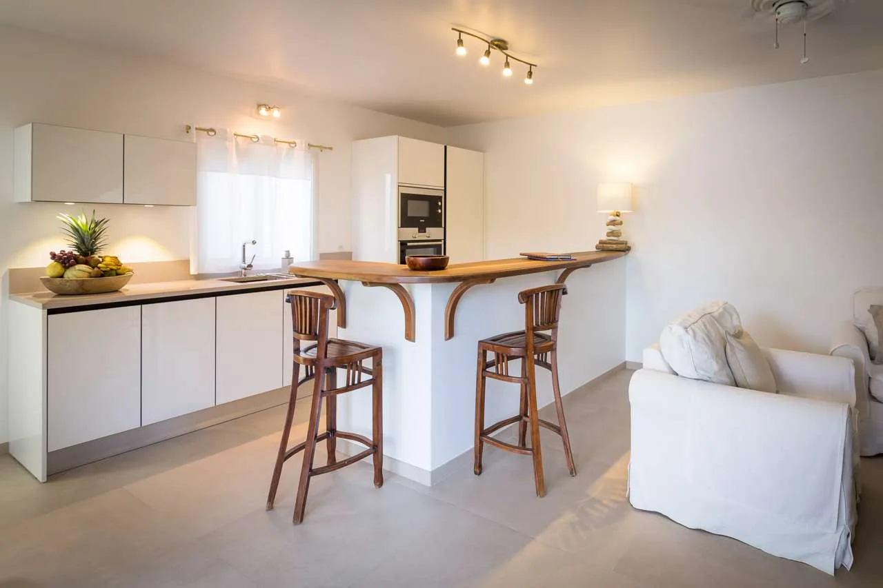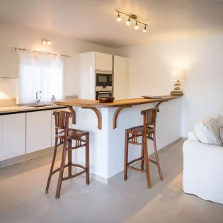 A breakfast bar separates the living and kitchen areas, which open to each other. High-end appliances make cooking at Villa Lo D'Amour a breeze, while the open-plan design means that the chef in your group can stay a part of the conversation. Or perhaps you’d prefer a private chef to do all the work? Our concierge is happy to oblige.