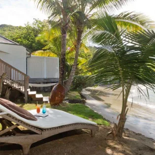 Located on the shores of Marigot Bay, Villa Lo D'Amour is within steps of the brilliant turquoise water. The beachfront villa is shaded by tall palm trees, while shopping and restaurants are only a few minutes away by car. This is a true island paradise for a family or group of friends traveling together.
