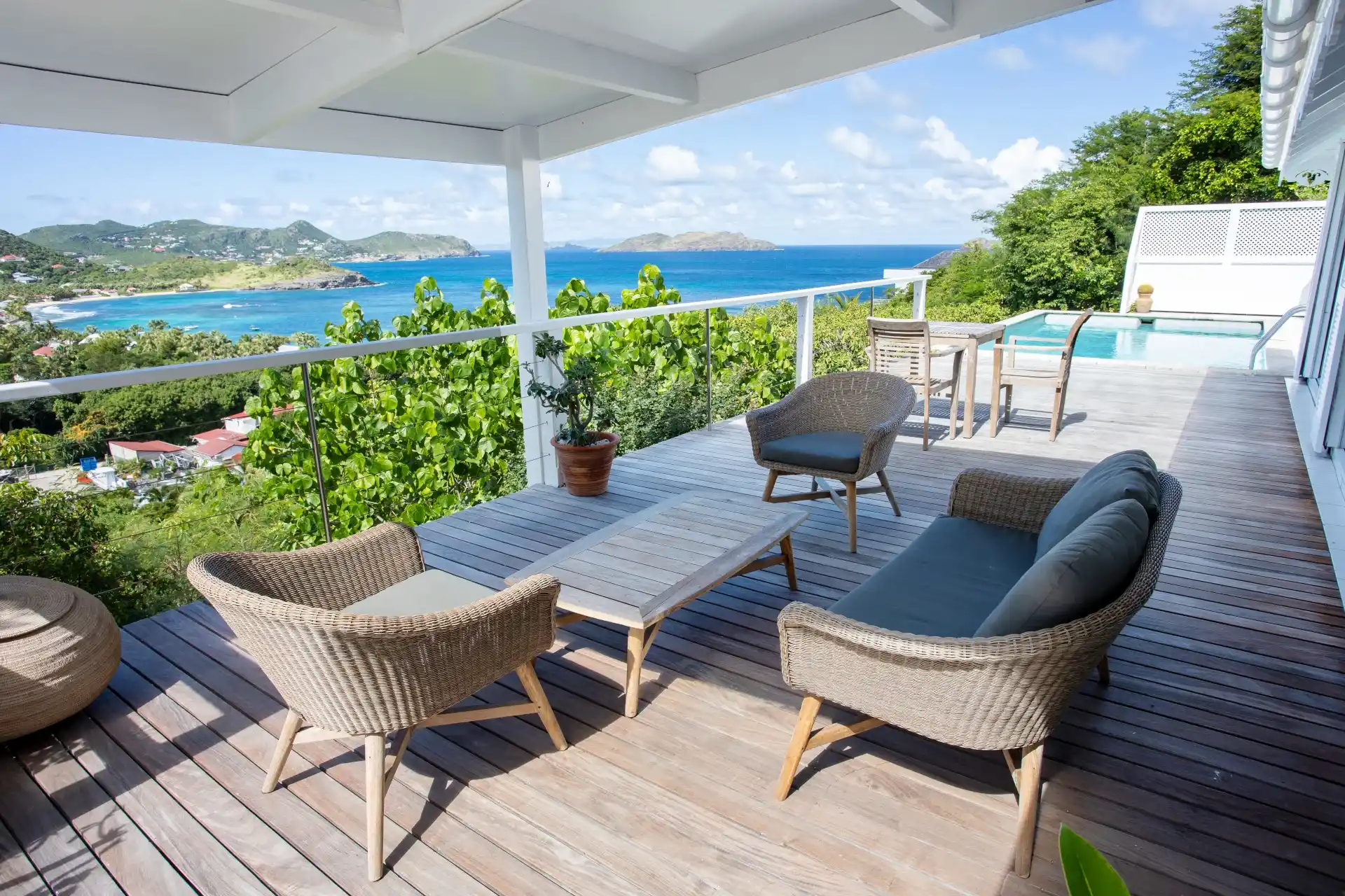 Perched above Lorient Bay, this villa offers breathtaking ocean and sunset views, stretching across the waters to Île Toc Vers, Île Frégate, and Île Bonhomme.