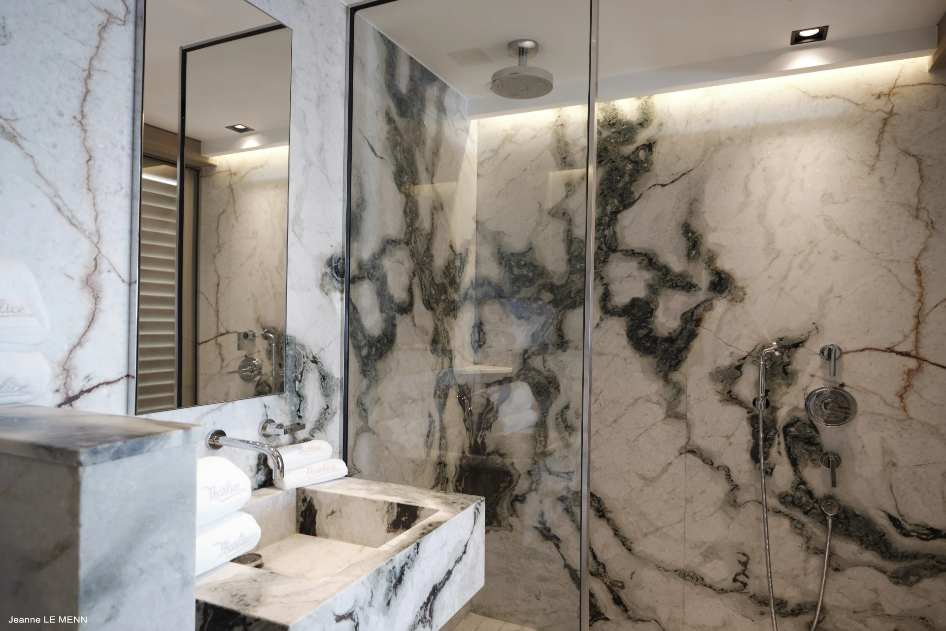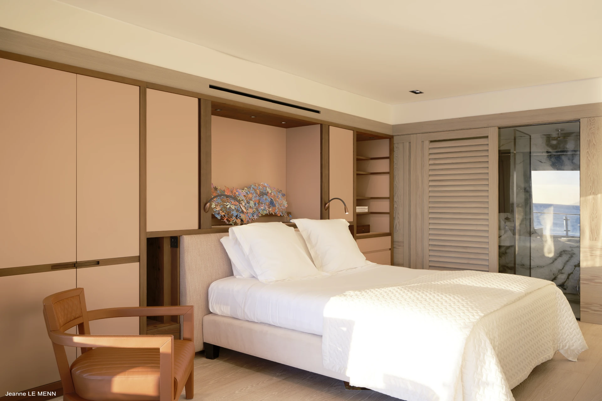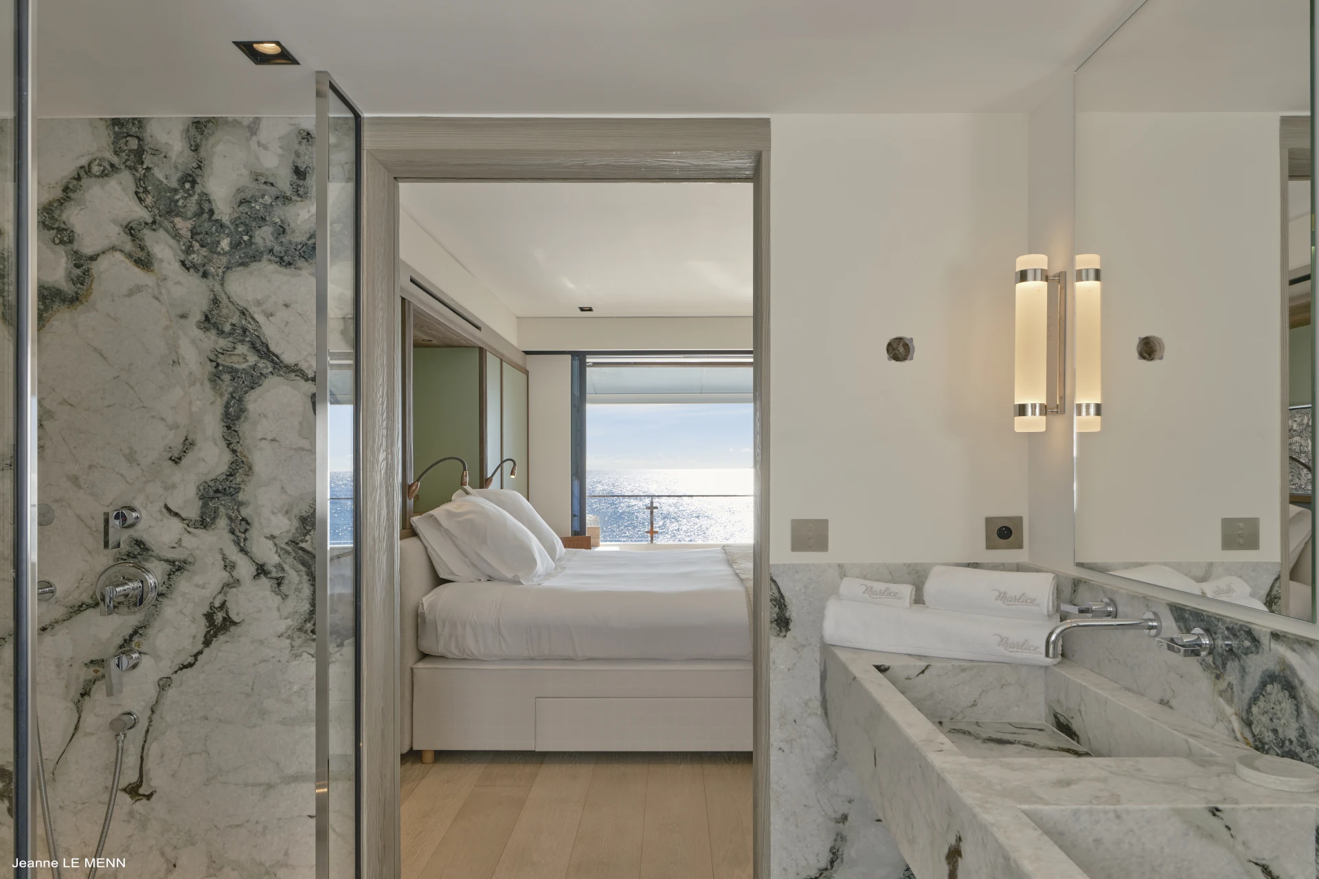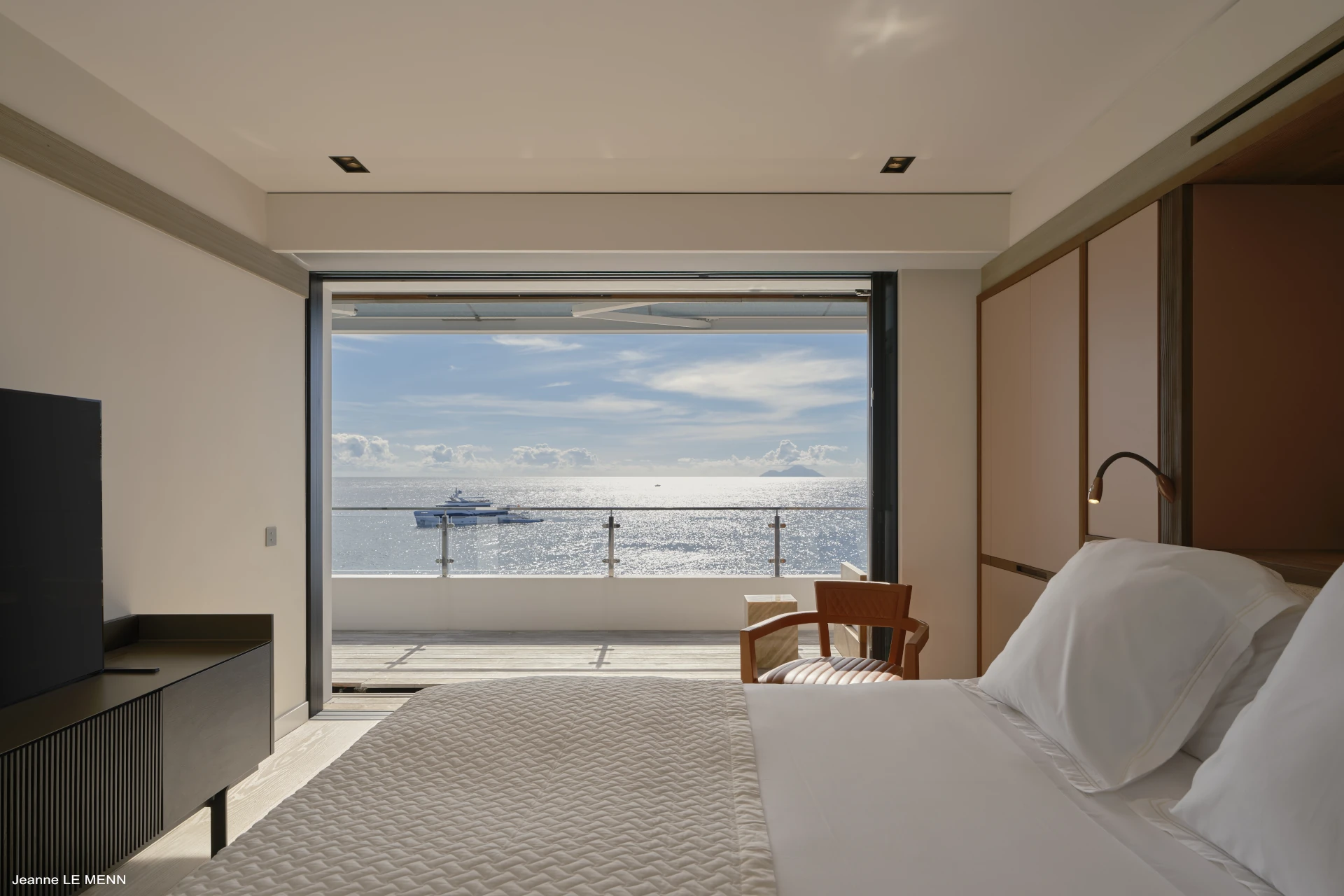 Designed with a contemporary, yacht-inspired aesthetic, Villa Marlice features refined marble finishes, clean architectural lines, and subtle marine tones reminiscent of the world’s finest luxury vessels. The main living spaces open seamlessly to the outdoors, enhancing the sensation of floating above the sea.