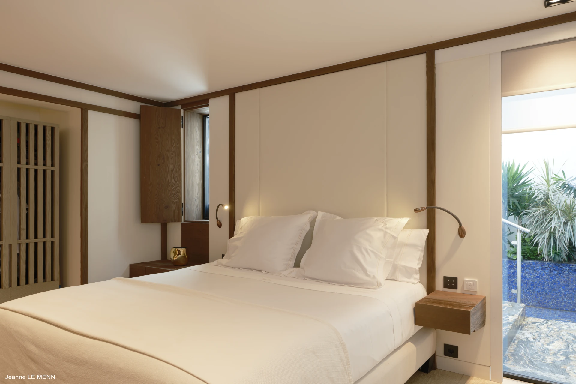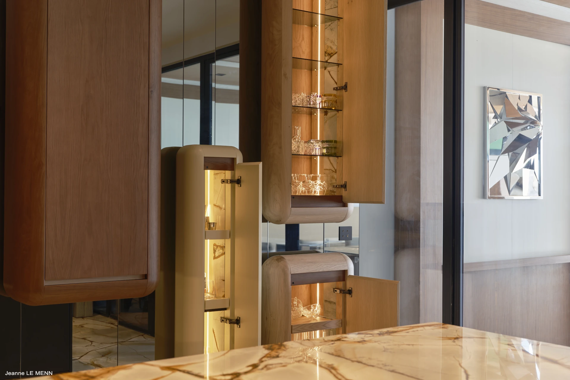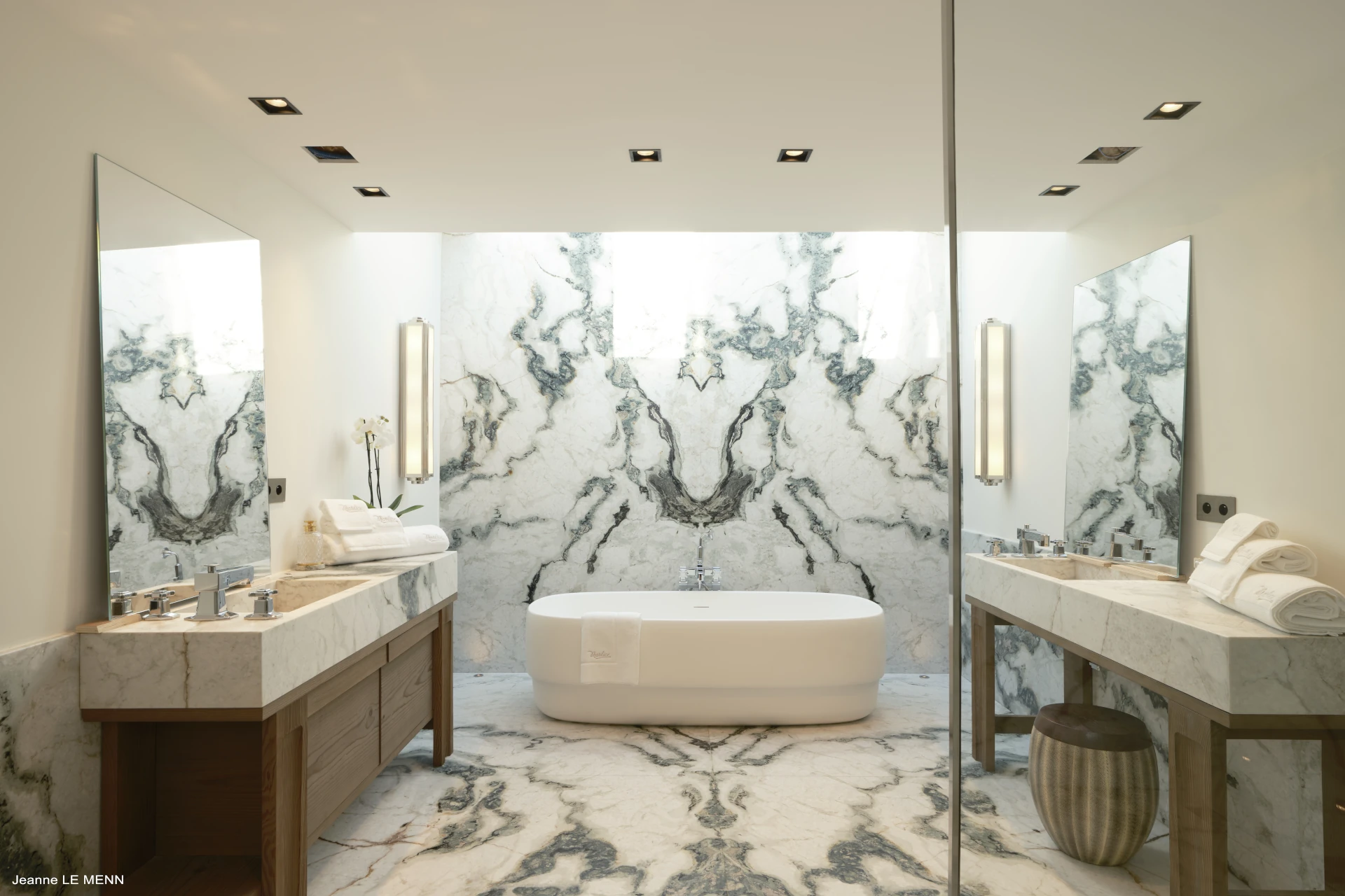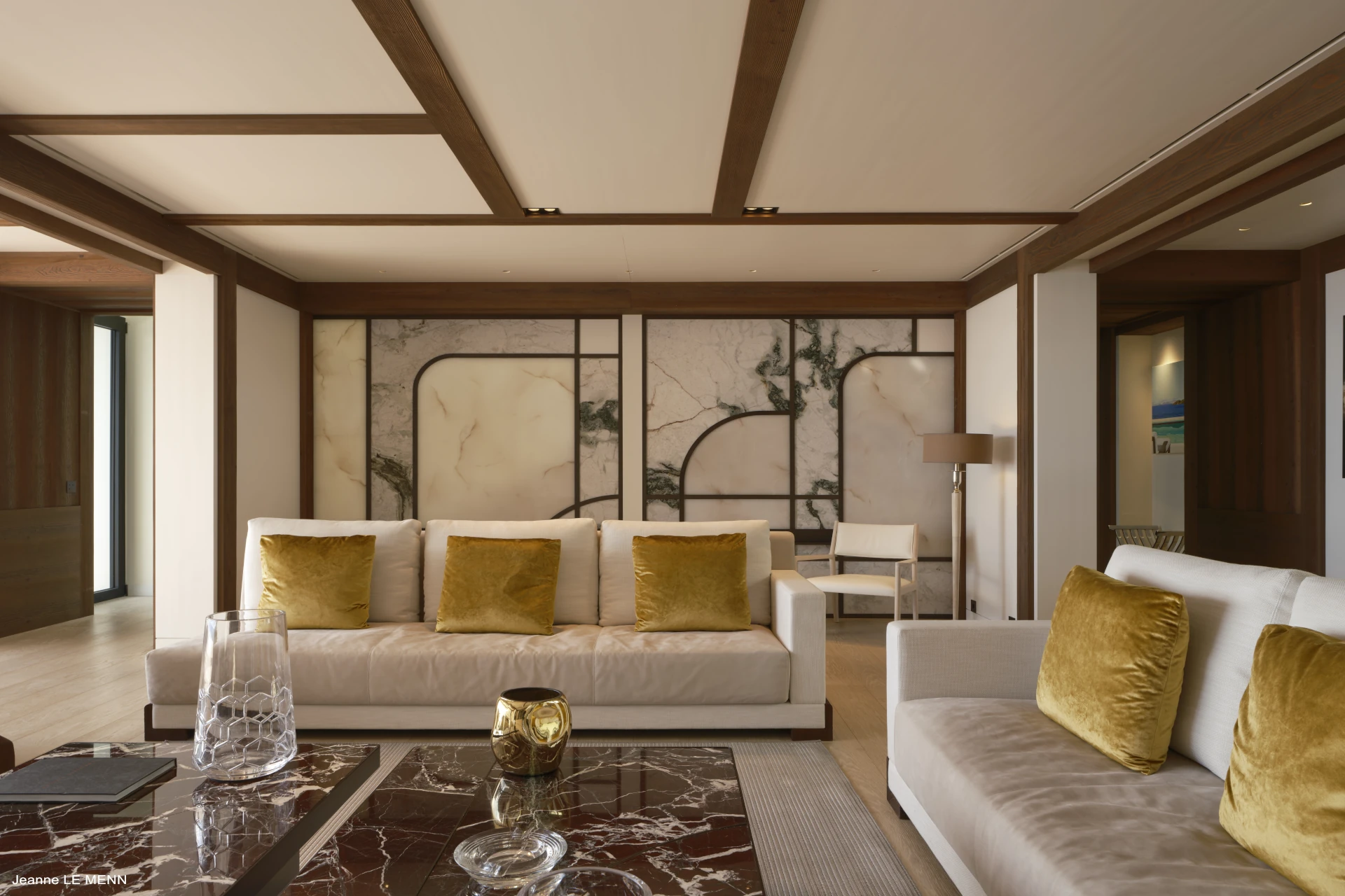 Designed with a contemporary, yacht-inspired aesthetic, Villa Marlice features refined marble finishes, clean architectural lines, and subtle marine tones reminiscent of the world’s finest luxury vessels. The main living spaces open seamlessly to the outdoors, enhancing the sensation of floating above the sea.