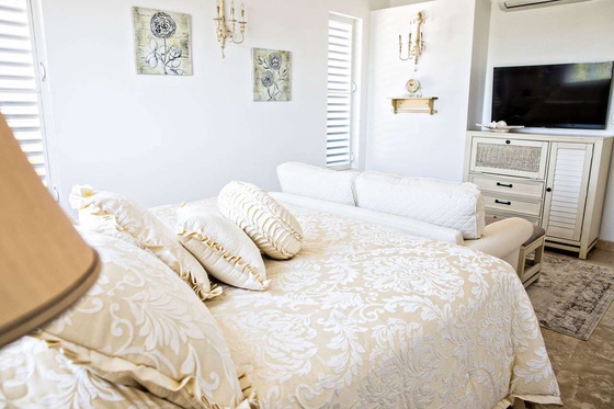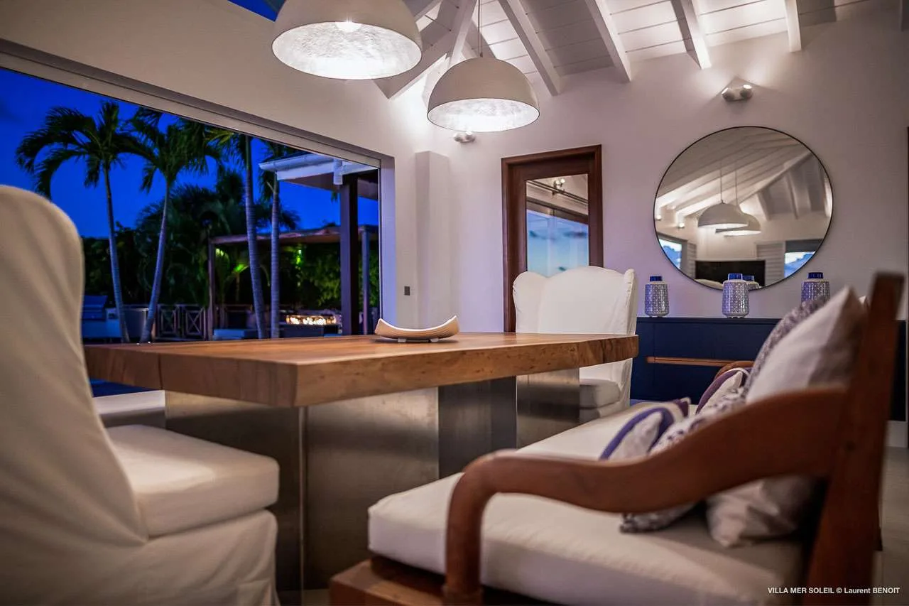 The updated and modern interiors at Villa Mer Soleil are chic, offering understated luxury for your stay. There are subtle tropical touches to the décor, from woven rugs underfoot to accents of dark mahogany in the villa’s design. There’s an air of exclusivity here, an idyllic and comfortable home for your Caribbean getaway.
