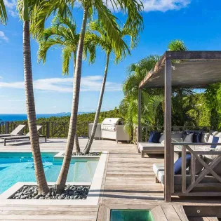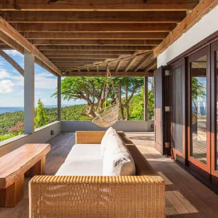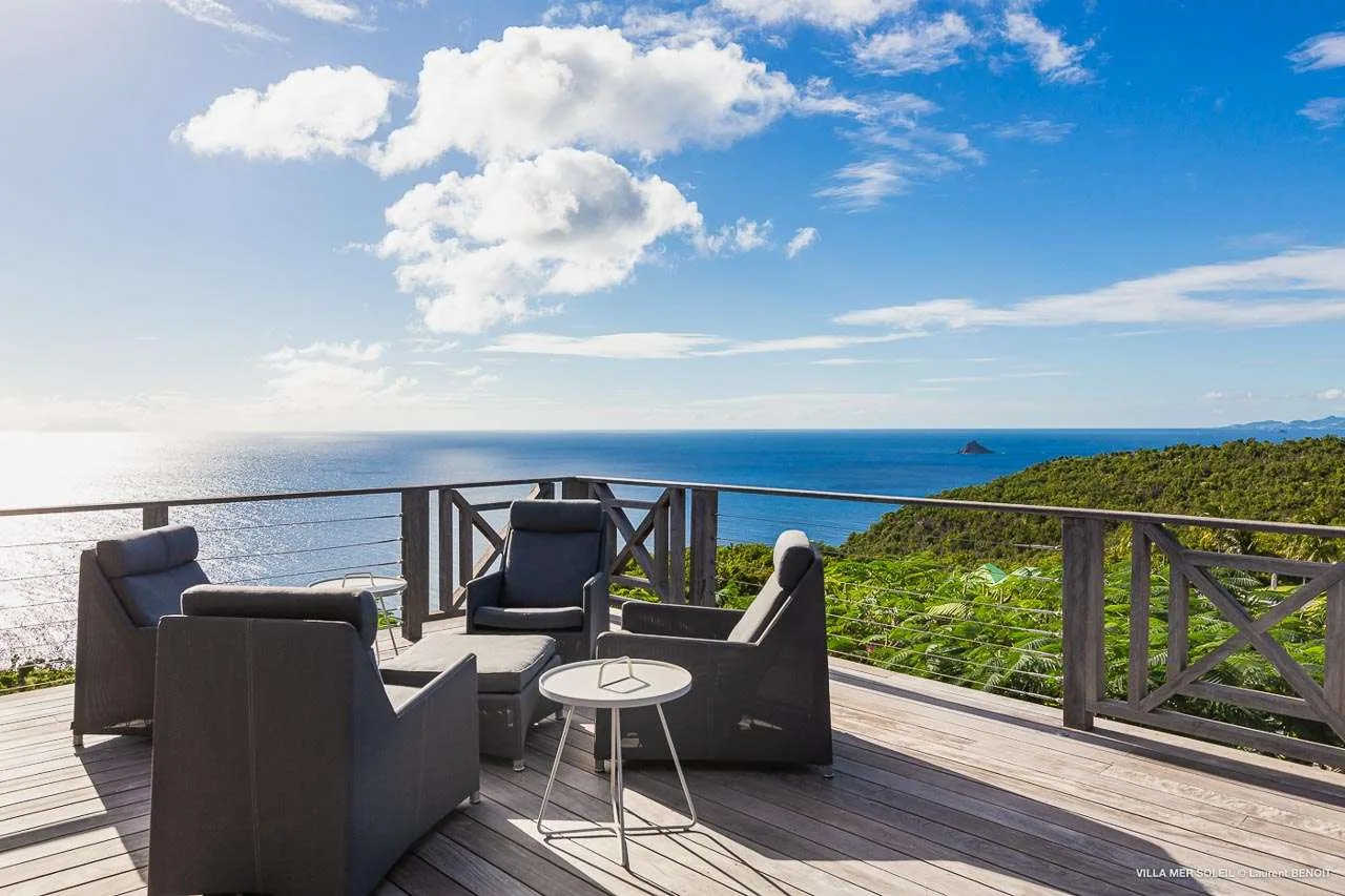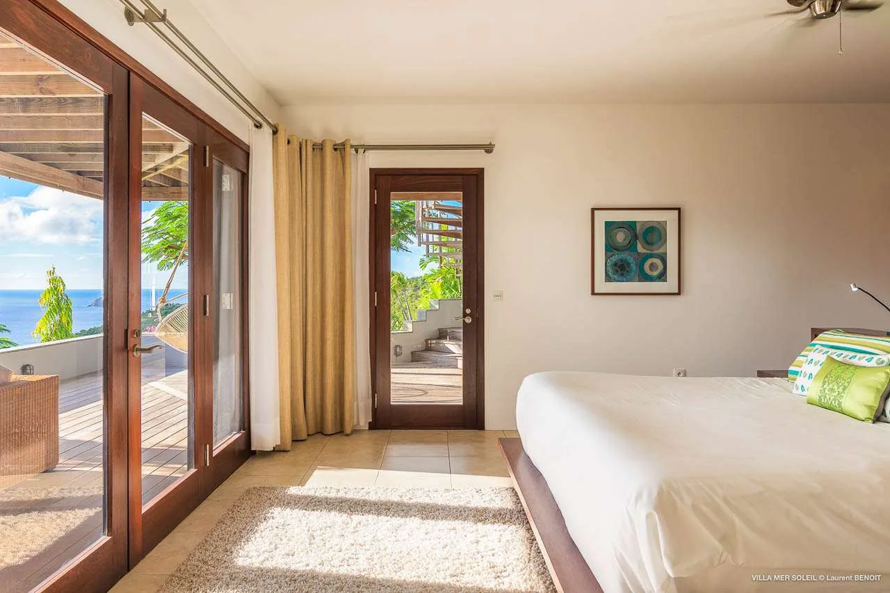 Situated in the lower hills of Gouverneur, Villa Mer Soleil is all about the ocean, which is almost visceral at the villa. From every angle, the shimmering Caribbean is framed through a doorway or window, making it seem as if the villa is floating on air. The beach is a 3-minute drive down the hill, while Gustavia is around 10 minutes by car.