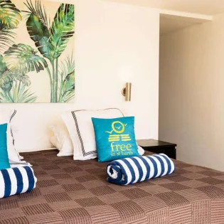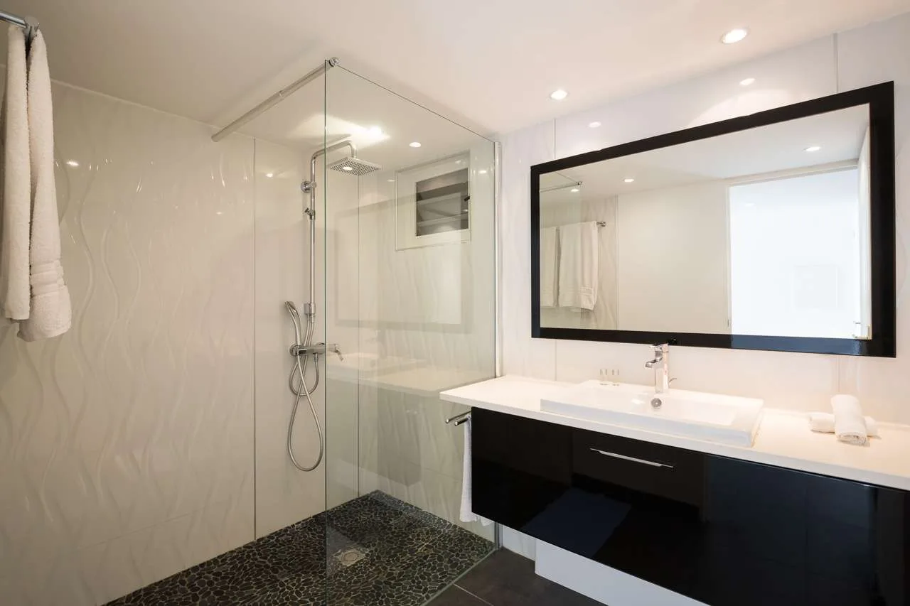 On either side of the living room are two master bedrooms, equal in size and each with a plush queen-sized bed. These two rooms also come with spacious ensuite bathrooms and terrific ocean views.