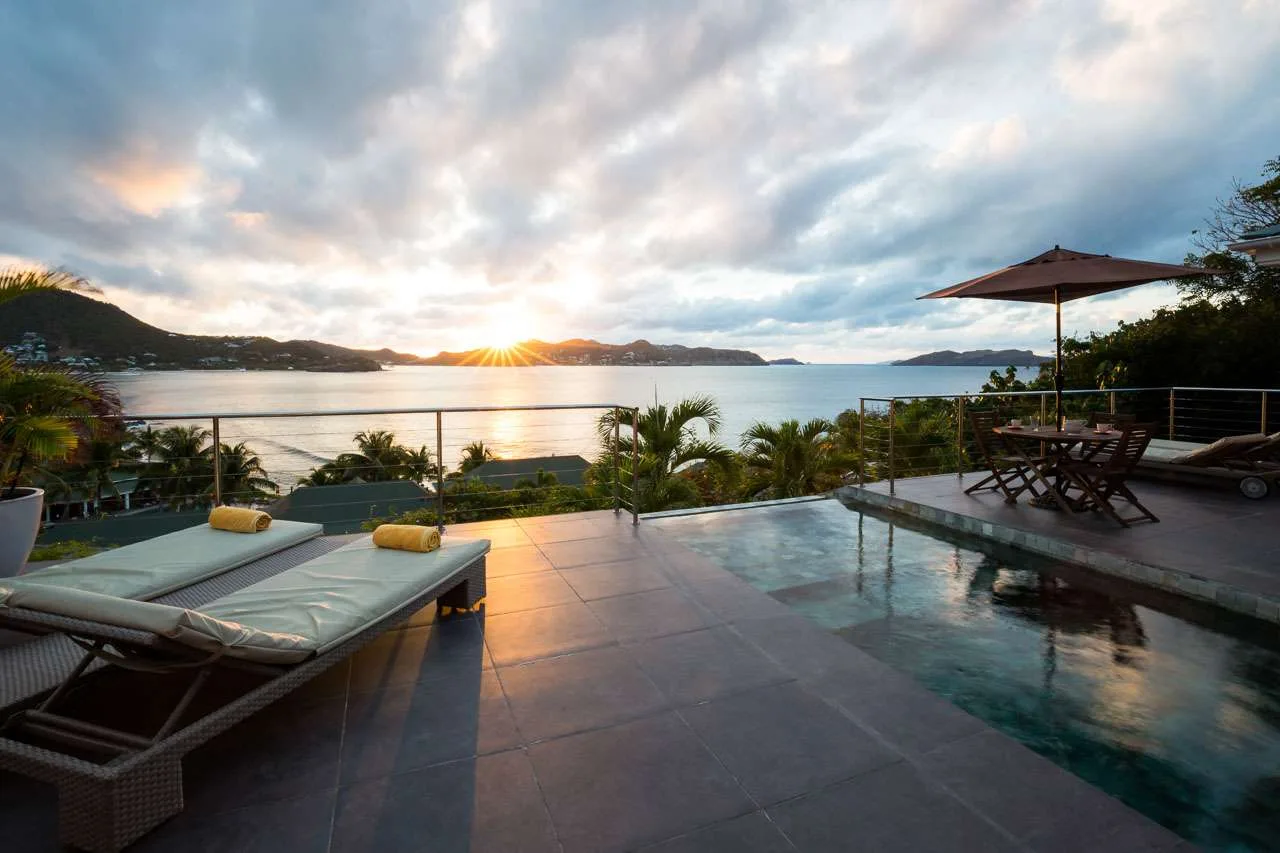Welcome to Villa Mirande (villa code: WV AUS), a beautiful 4-bedroom villa located in Pointe Milou, St. Barts. This island home enjoys exquisite sunset views from the terrace and living space, overlooking the shimmering ocean and offshore islands.