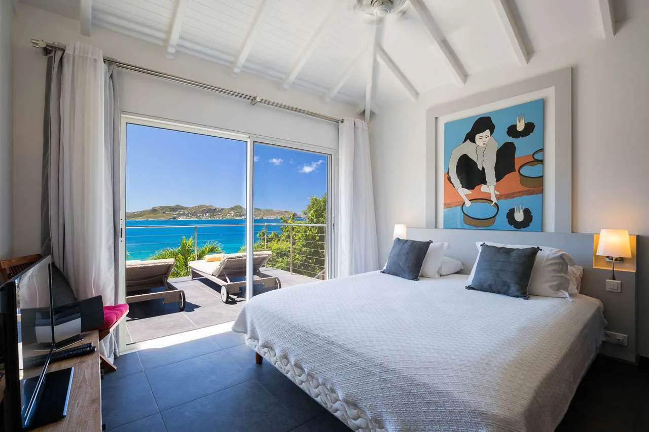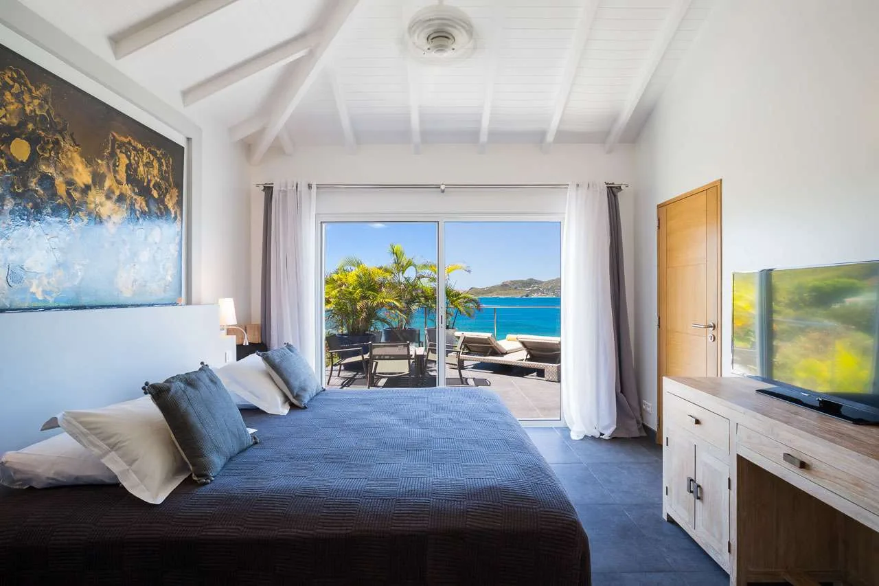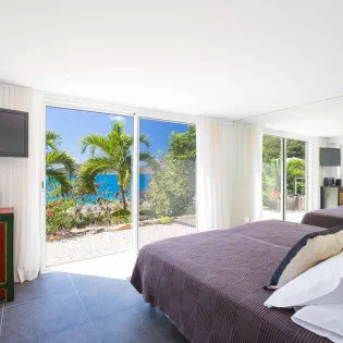 There’s a graceful elegance to the interiors at Villa Mirande, with clean white hues, airy ceilings, and a pared-back décor. It’s a place for slipping into the island pace of life, enjoying quality time with family and friends, and gazing out at the stunning natural beauty of St. Barts.