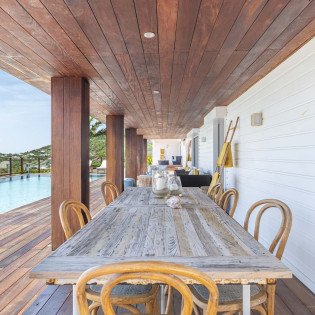 Outside surrounding the living room is a large terrace with seating and dining areas, letting you spend leisurely days outside however you wish. Whether it’s a quiet day of reading or inviting some friends for a pool party, the outdoor spaces at Villa Nala are incredible.