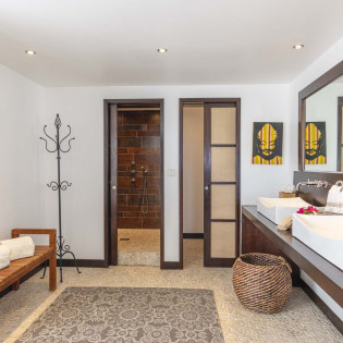 Villa Nala is all about the classic Caribbean design. Expect bright and airy living spaces, clean hues of white and gray, and beautiful touches of island wood and rattan textures. Exotic island artworks hang on the wall, while the large living areas all open to the outdoor terrace, creating a home that’s equal parts casual beach house and luxurious getaway.