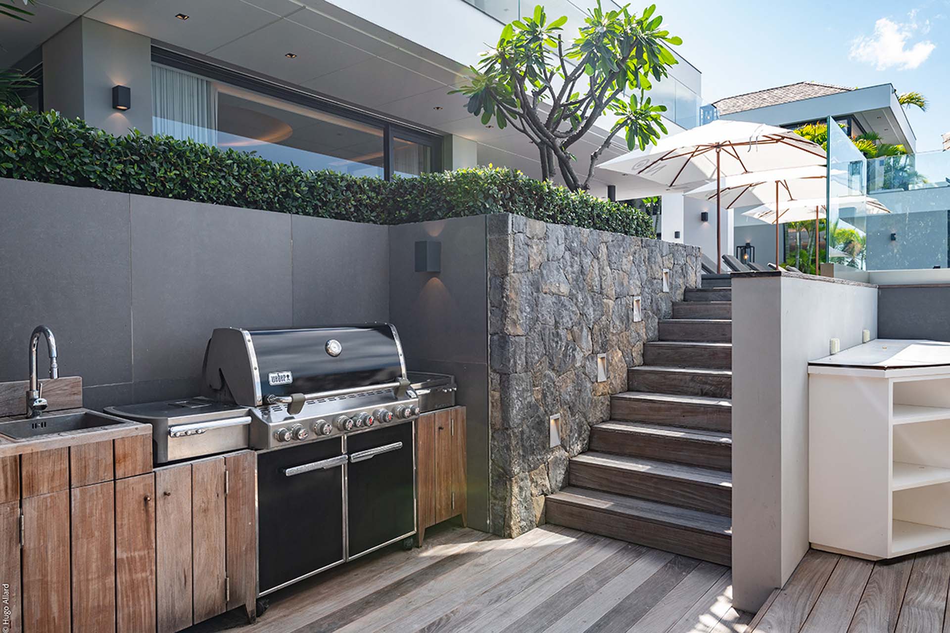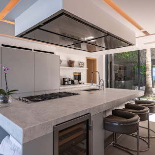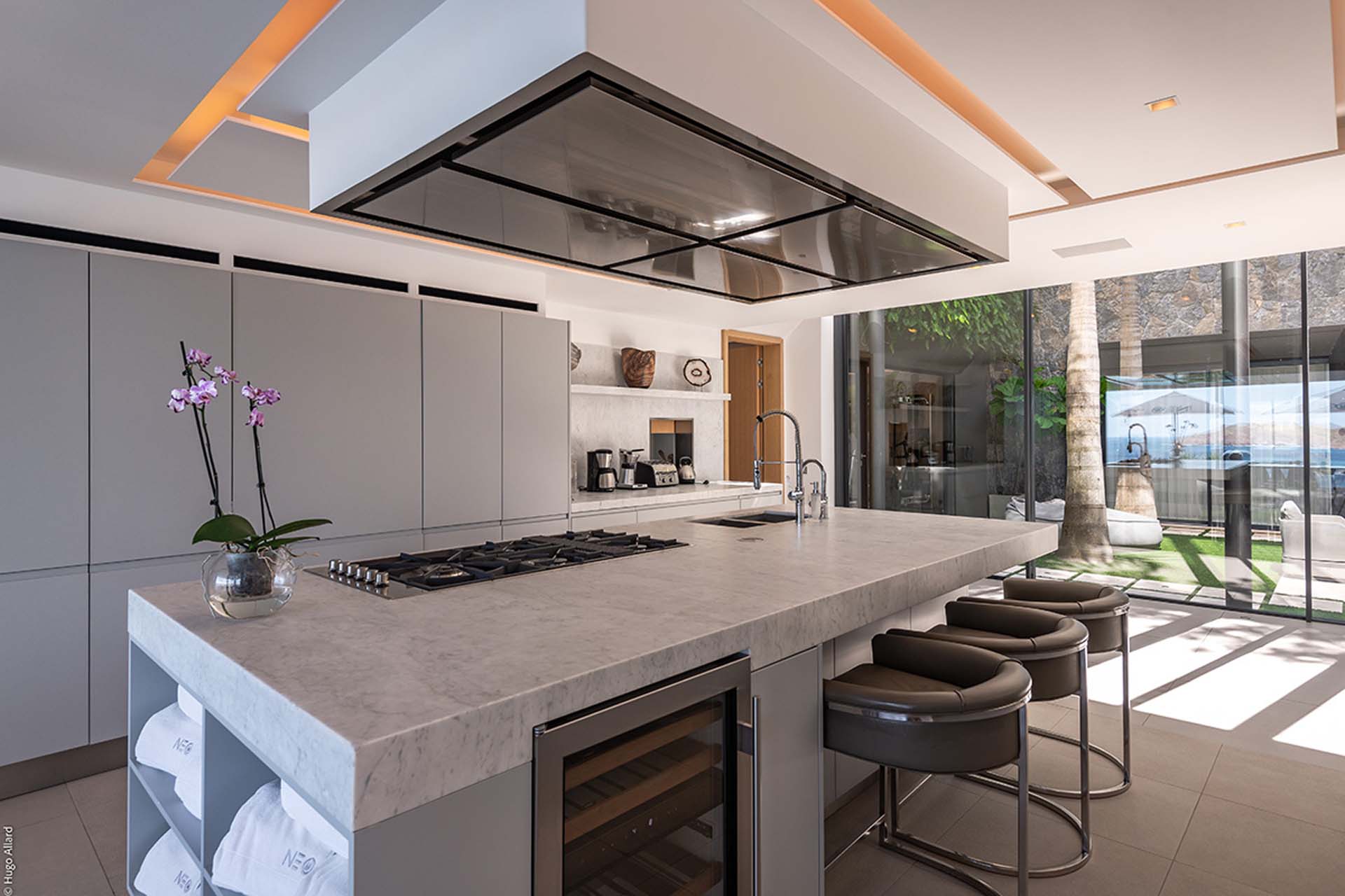The modern and well-equipped kitchen at Villa Neo makes cooking a breeze. Our concierge can even organize grocery pre-stocking or delivery, catered meals, or arrange a private chef service for a special occasion.