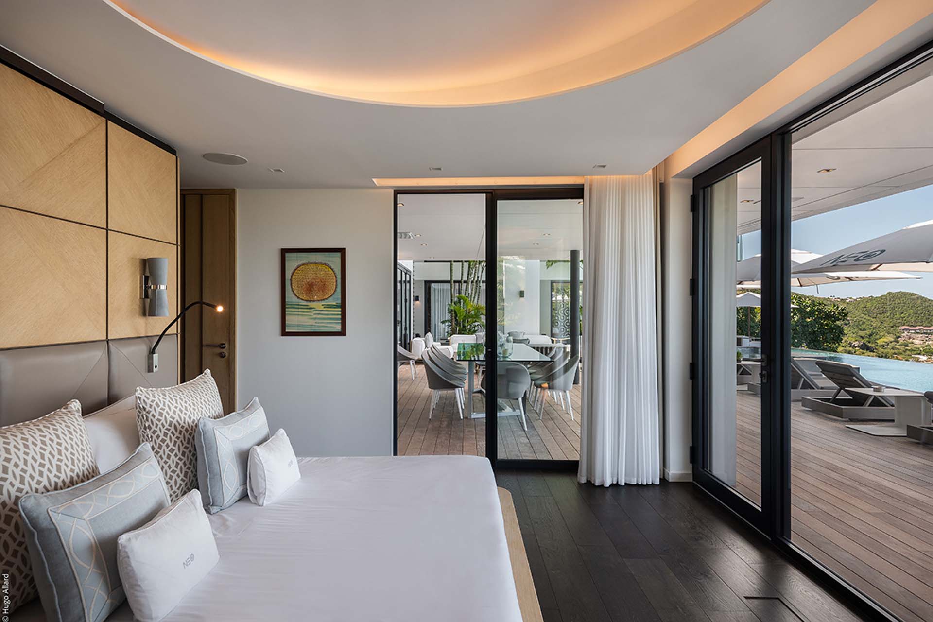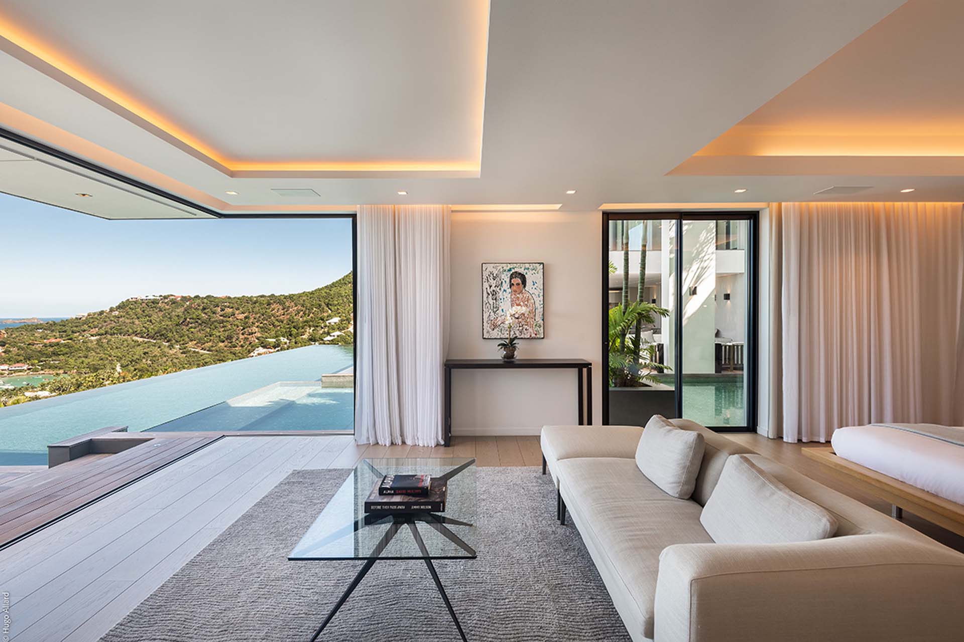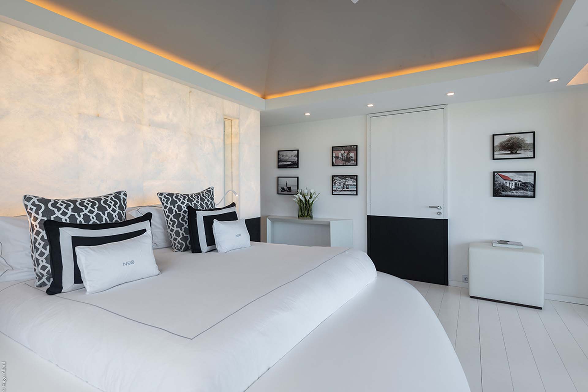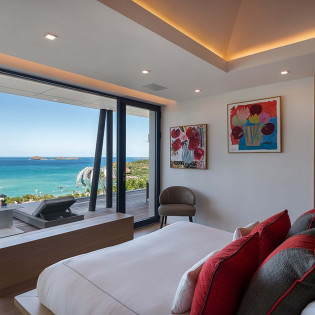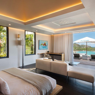 Designed by local architect Patrick Raffeneau, Villa Neo is all about the glamorous life on St. Barts. Abundant space, style, and luxury come together, with soaring ceilings, glass-walled walkways, and large windows opening to expansive views on both sides. Exquisite design, carefully selected furnishings, and eye-catching artwork complete this stunning home.