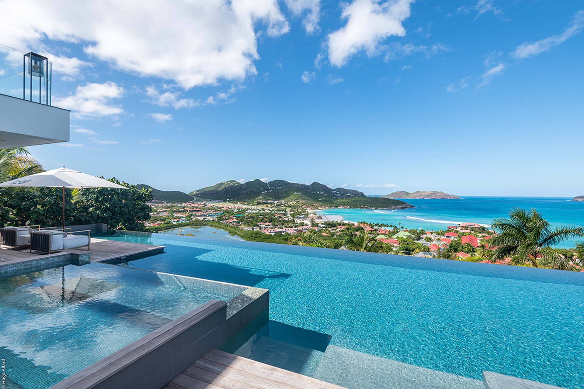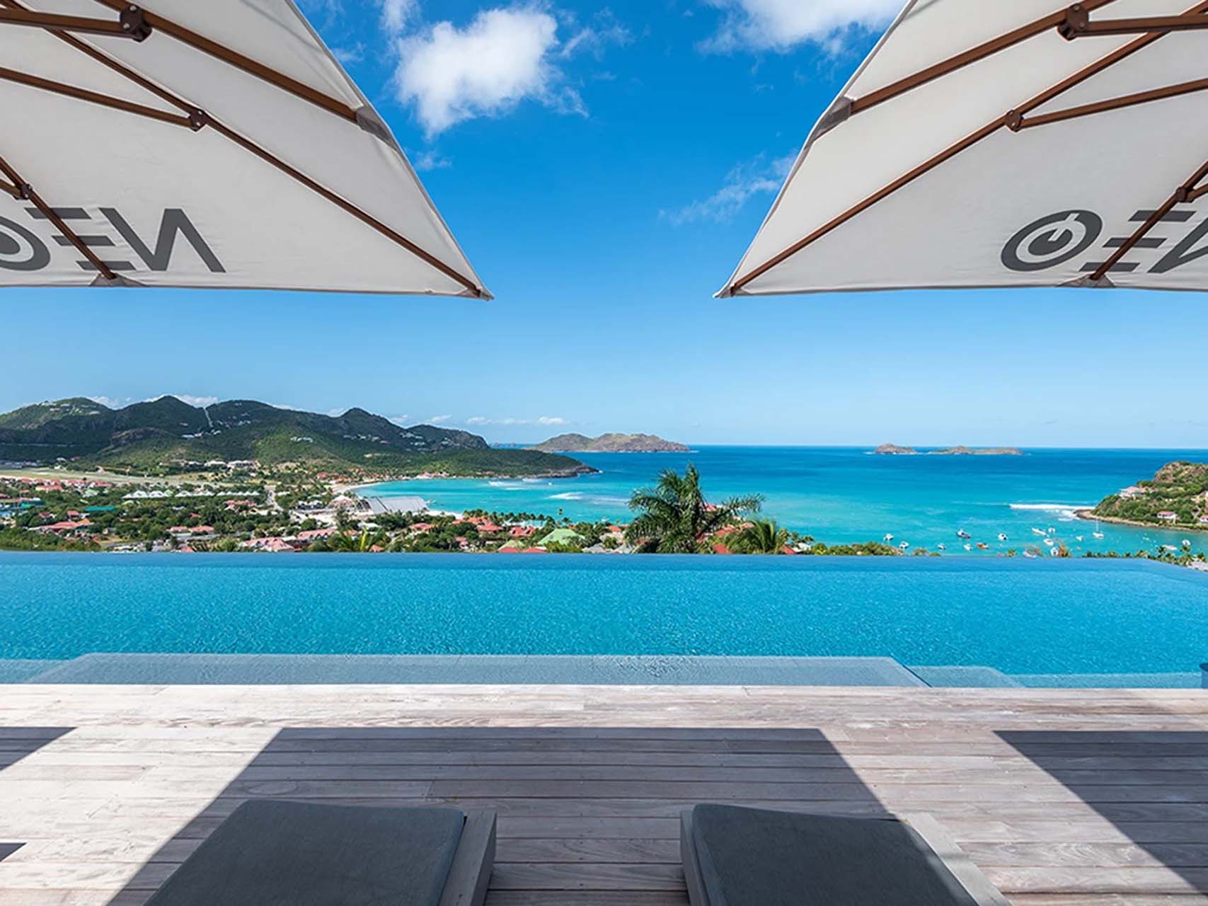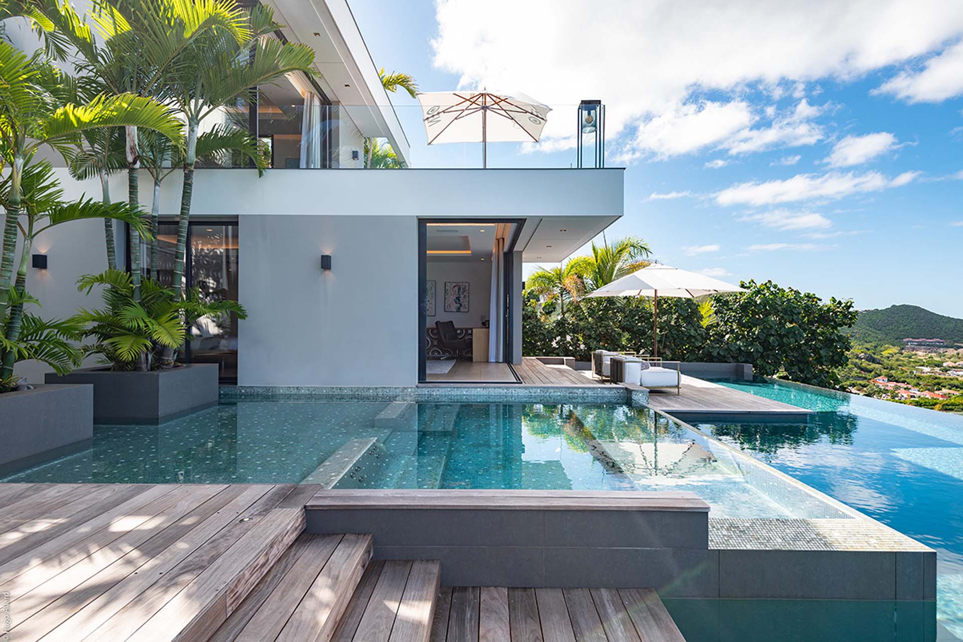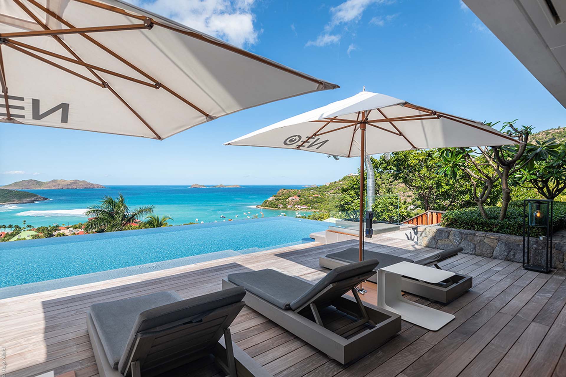 Designed by local architect Patrick Raffeneau, Villa Neo is all about the glamorous life on St. Barts. Abundant space, style, and luxury come together, with soaring ceilings, glass-walled walkways, and large windows opening to expansive views on both sides. Exquisite design, carefully selected furnishings, and eye-catching artwork complete this stunning home.