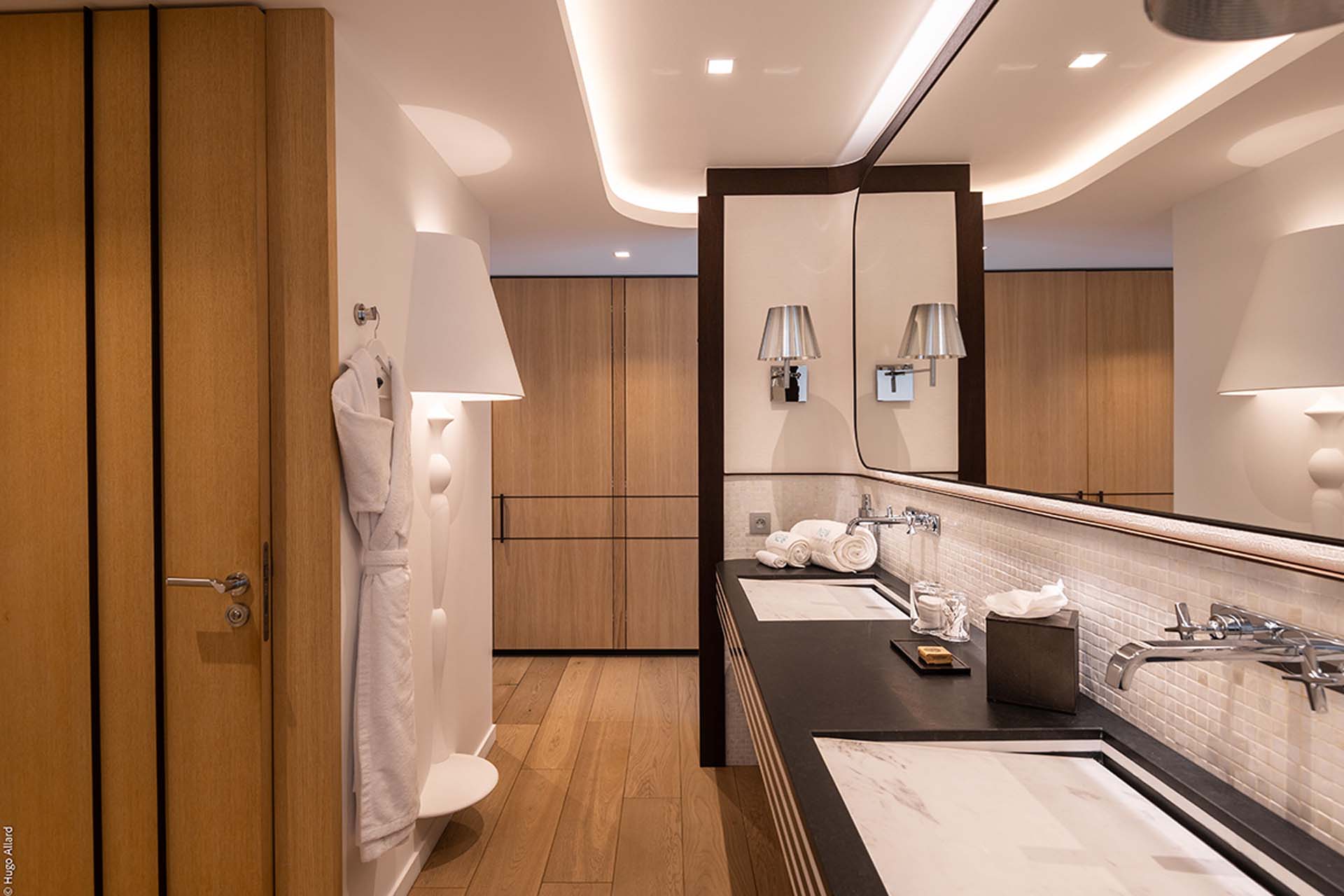 Each bedroom has a luxurious king-sized bed and spacious ensuite. The rooms also enjoy a sound system and a TV hooked up with Apple, U.S., and French satellite channels, all controlled by an in-room iPad.