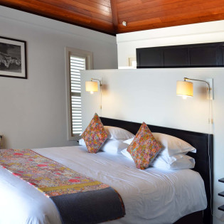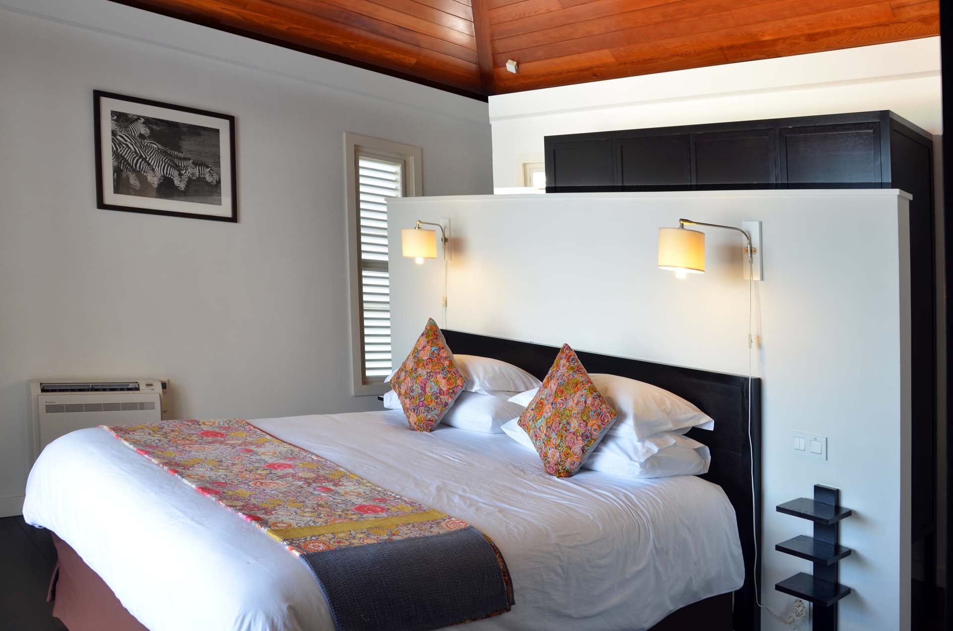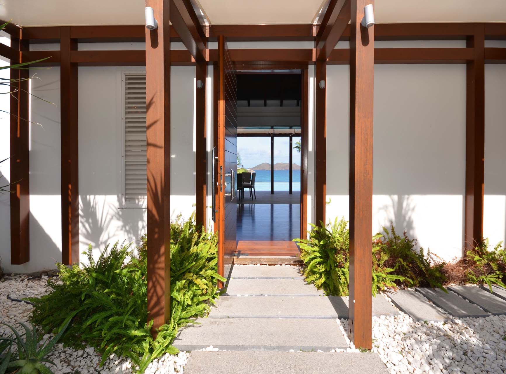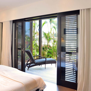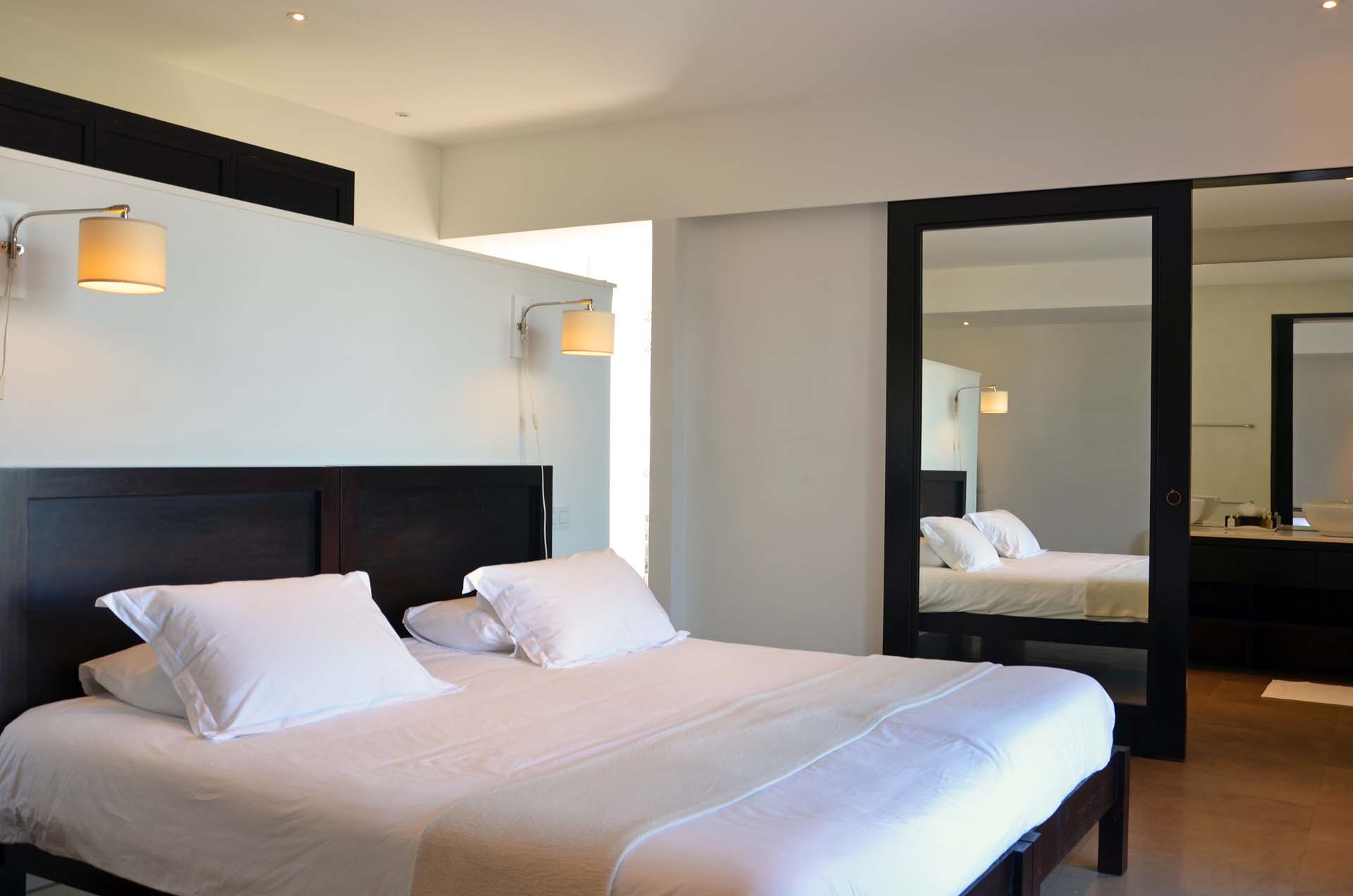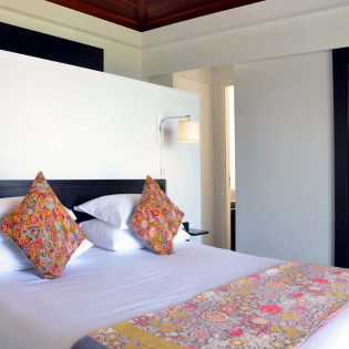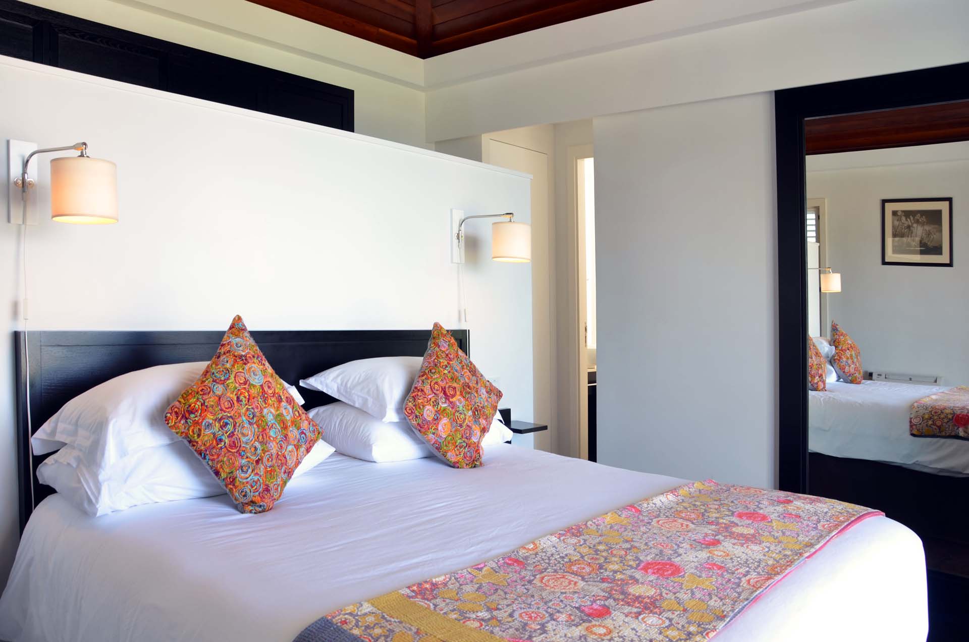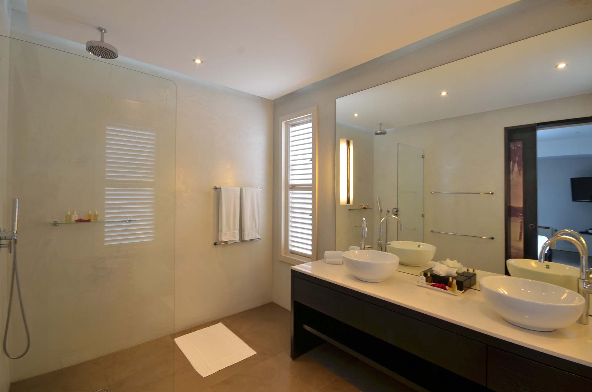 The 3 spacious air-conditioned bedrooms all have ensuite baths. Two with king beds are at opposite ends of the villa; pool level, they boast ocean views. The third is lower-level, its king bed is convertible to twins and has a garden view. All are nice retreats.