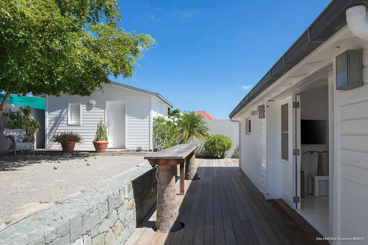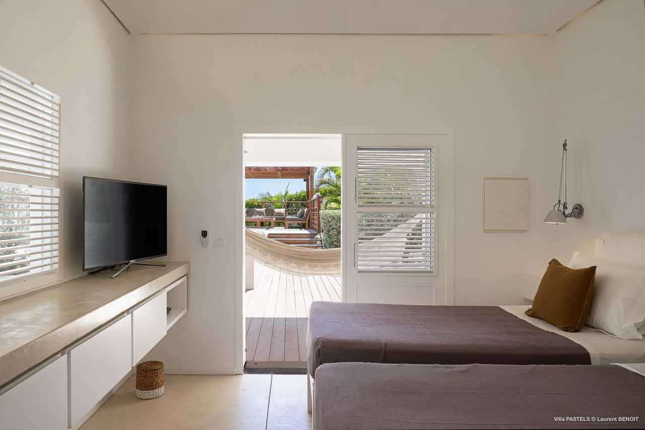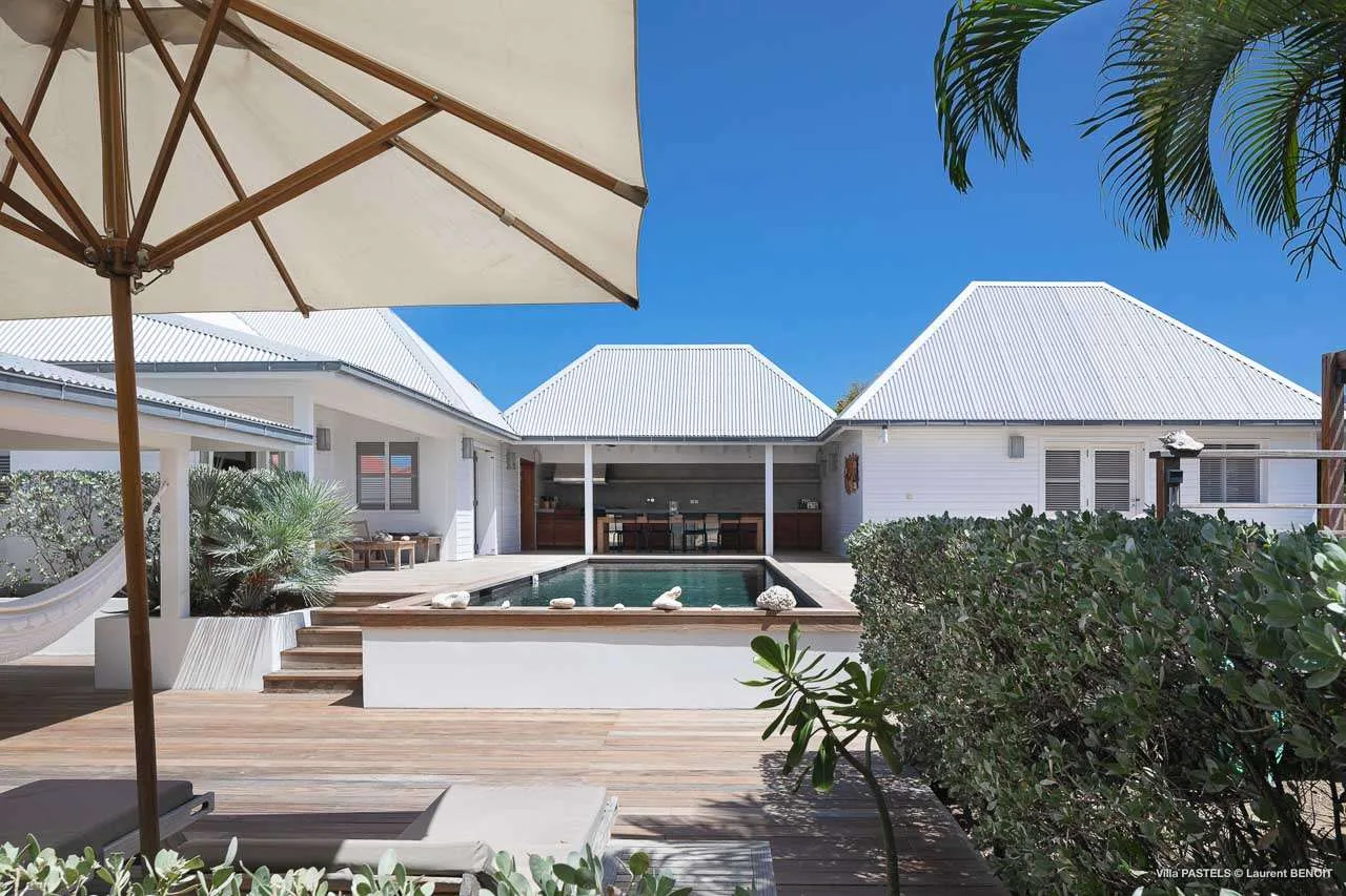 Villa Pastels is breezy and bright thanks to its layout, spread across the main building and several bedroom bungalows. It all orbits around a central terrace, which is the ideal spot for lazy days in the Caribbean sun.
