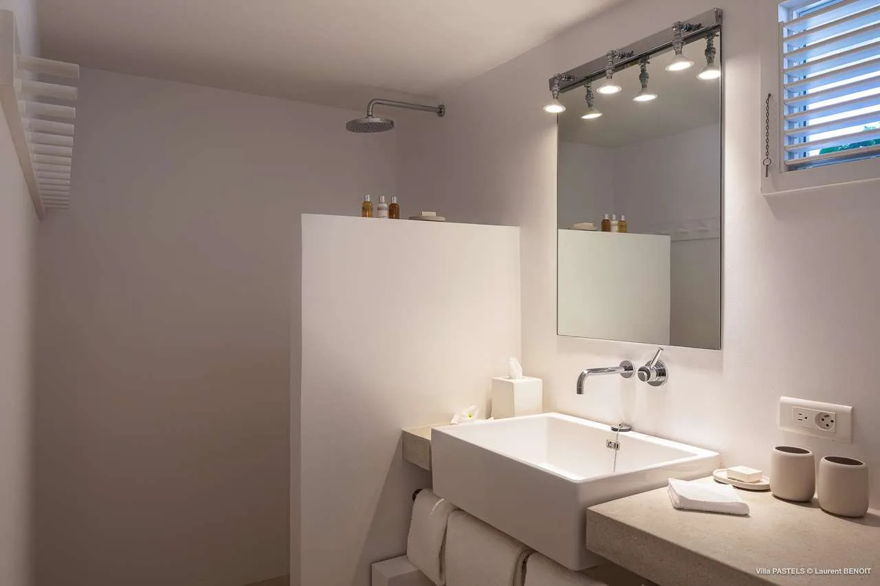 There are 4 bedrooms at Villa Pastels, minimalist and pared-back spaces that are relaxing and quiet.