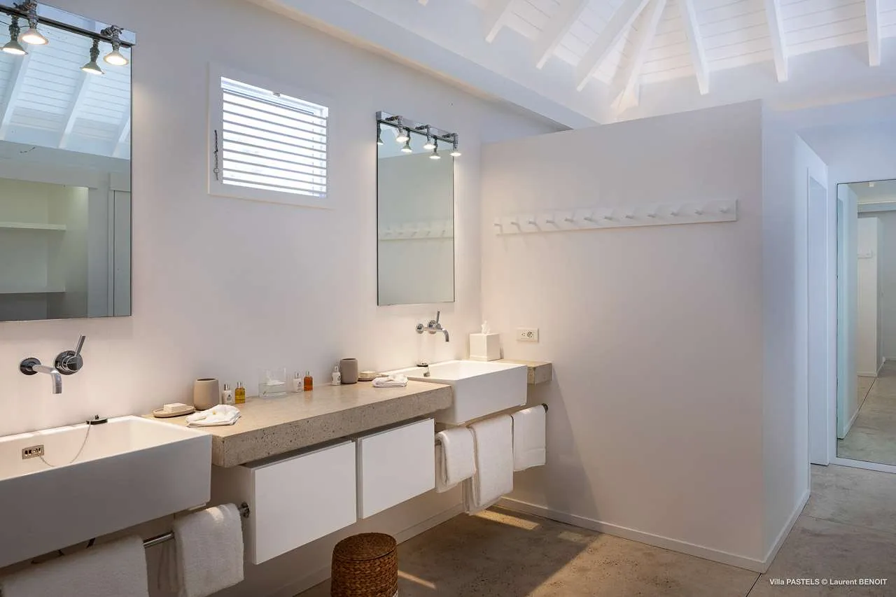 Welcome to Villa Pastels (villa code: WV EBA), a contemporary 4-bedroom villa located in Vitet, St. Barts. This special gem of a villa enjoys incredible ocean views within minutes of several beaches and shopping.