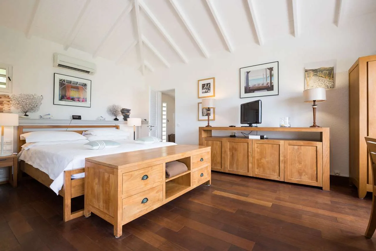 Bedrooms: The 2 bedrooms at Villa Phoenix are located on either side of the great room, a layout that ensures quiet and privacy. With creamy neutrals, wooden furnishings, and flat-screen TVs, relaxing and recharging is easy.