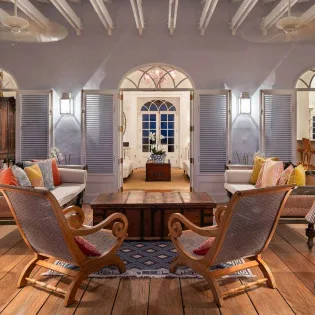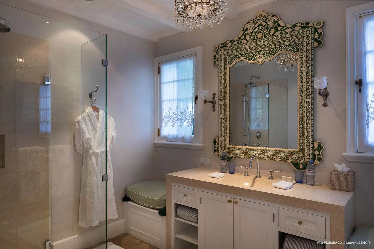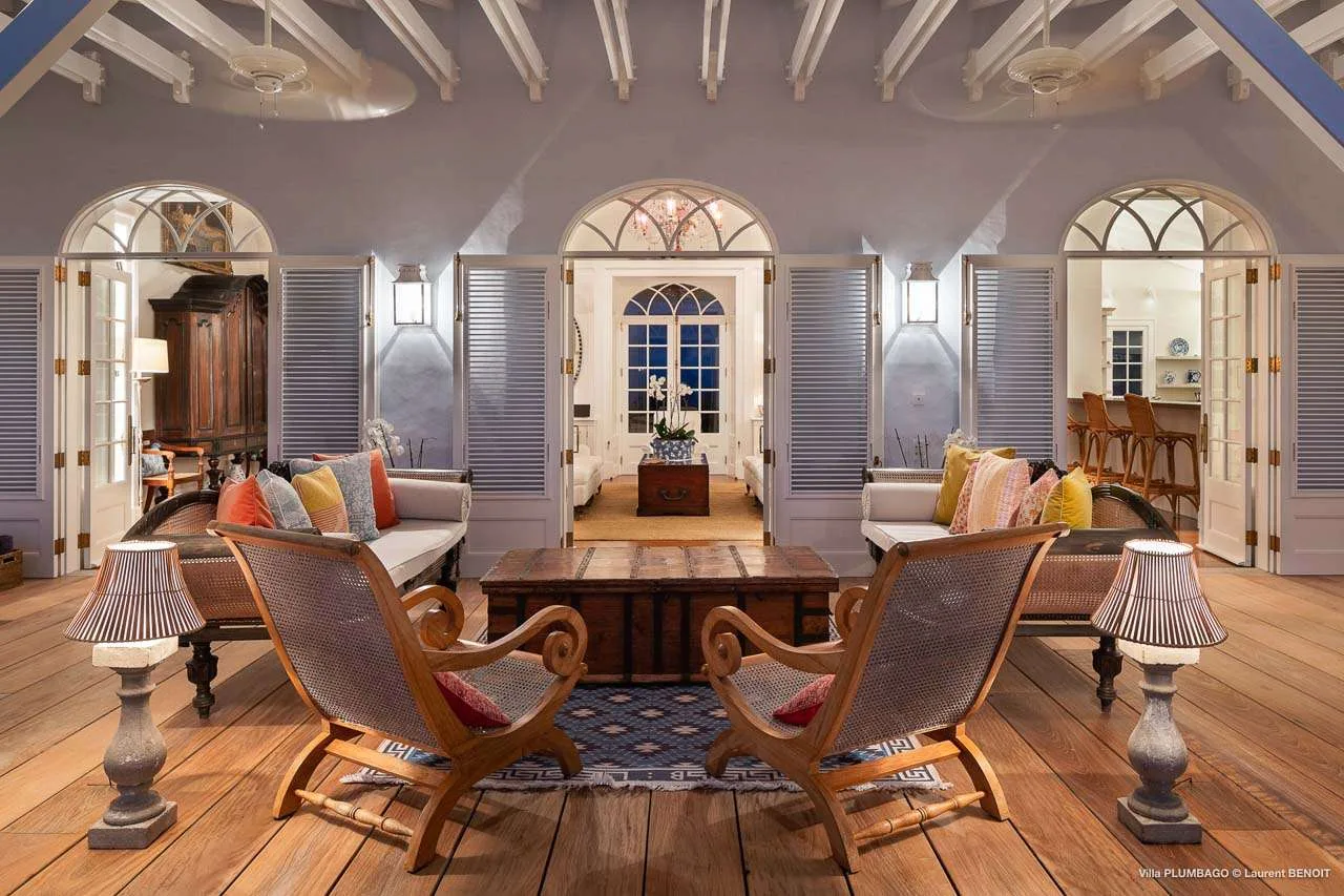 Inside Villa Plumbago, all roads lead to the main room, which combines the living room and kitchen. The grand and elegant feeling of the home creates an enticing atmosphere, with unique details adding touches of character to each room.