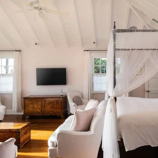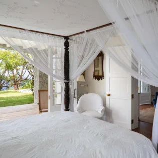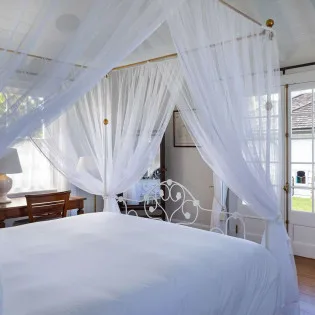 The first guest room is situated in a bungalow between the main house and the master bungalow. This room is slightly smaller and comes with another four-poster king and a luxury ensuite.