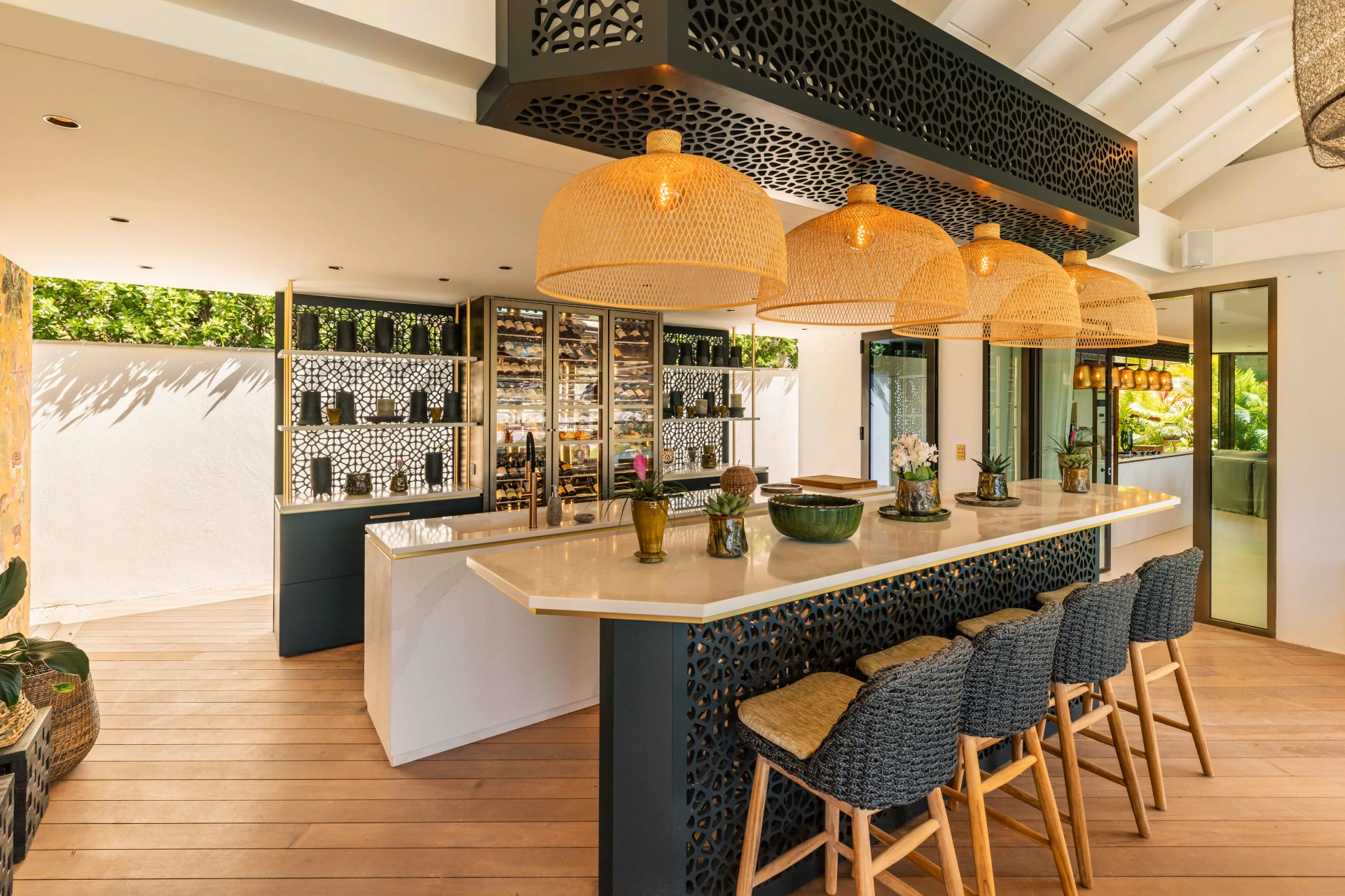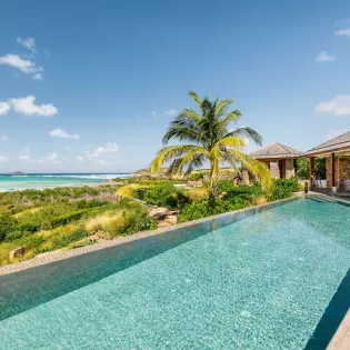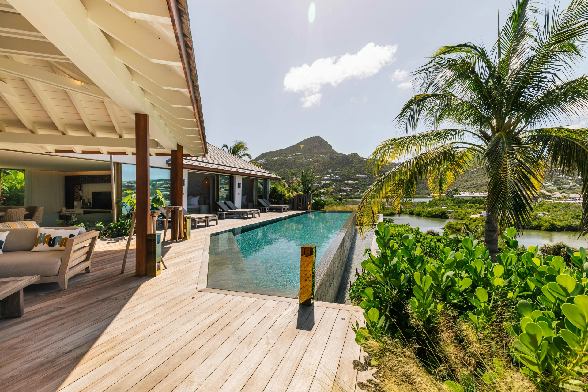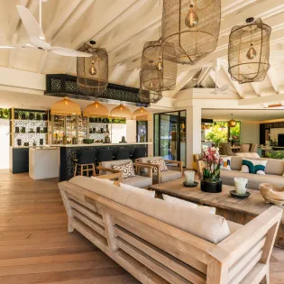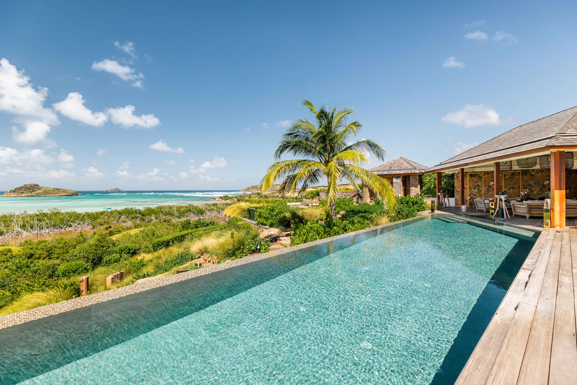 The villa welcomes you in an elegant and refined setting. A haven of peace within this dream villa, offering a breathtaking view of the Caribbean Sea and the turquoise blue lagoon.