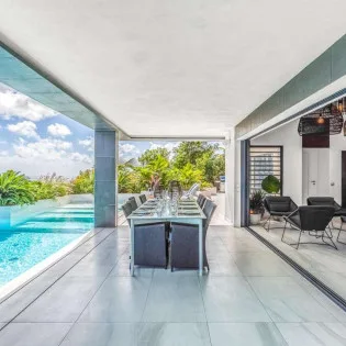 Spread over three levels, the design of Villa Rose Dog is one that coaxes you outside at every turn. Doors and windows melt away to create a blend of indoor and outdoor space, letting you enjoy the island sun and natural breezes whilst taking in those views from the comfortable luxury of the home.