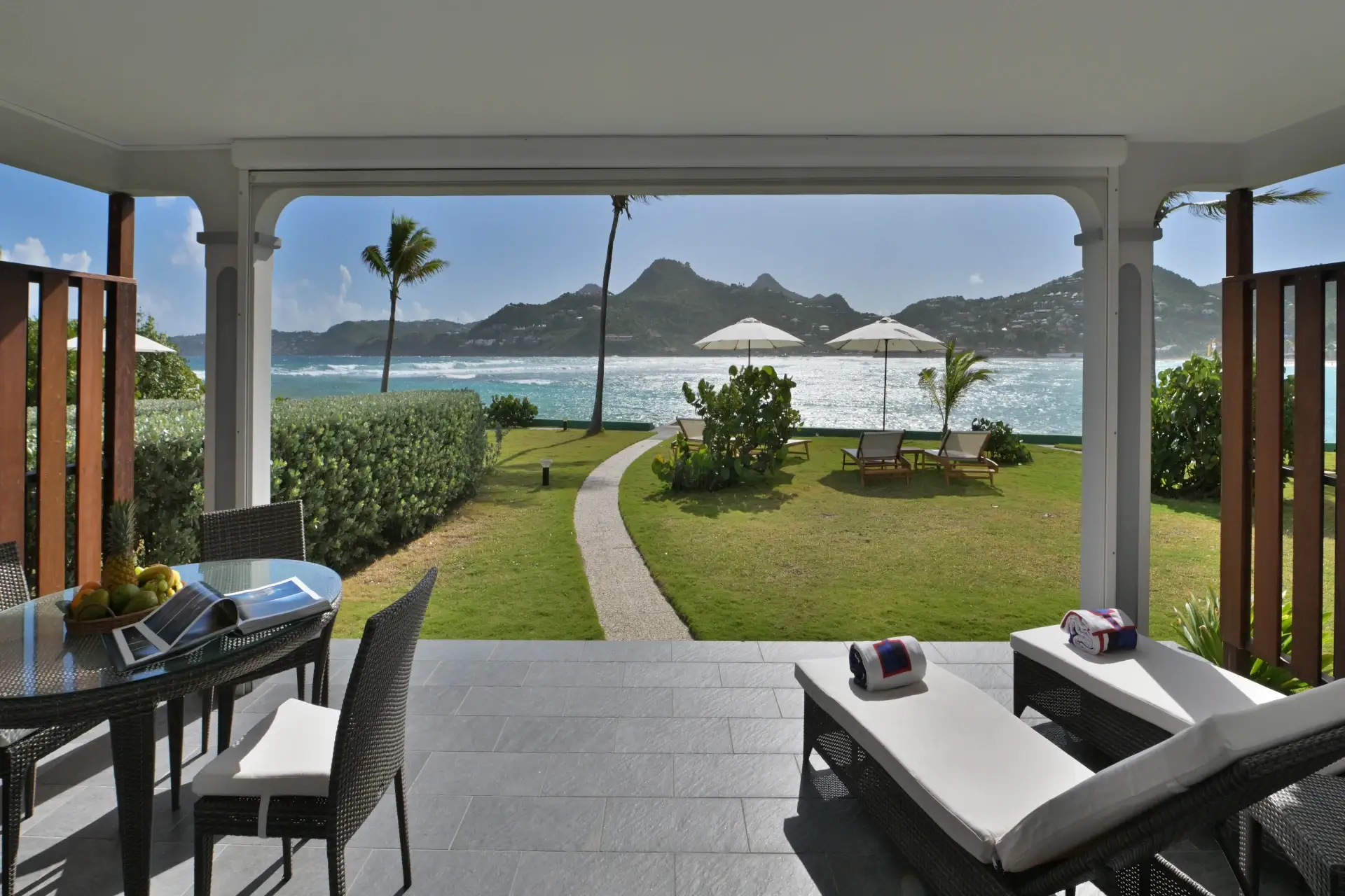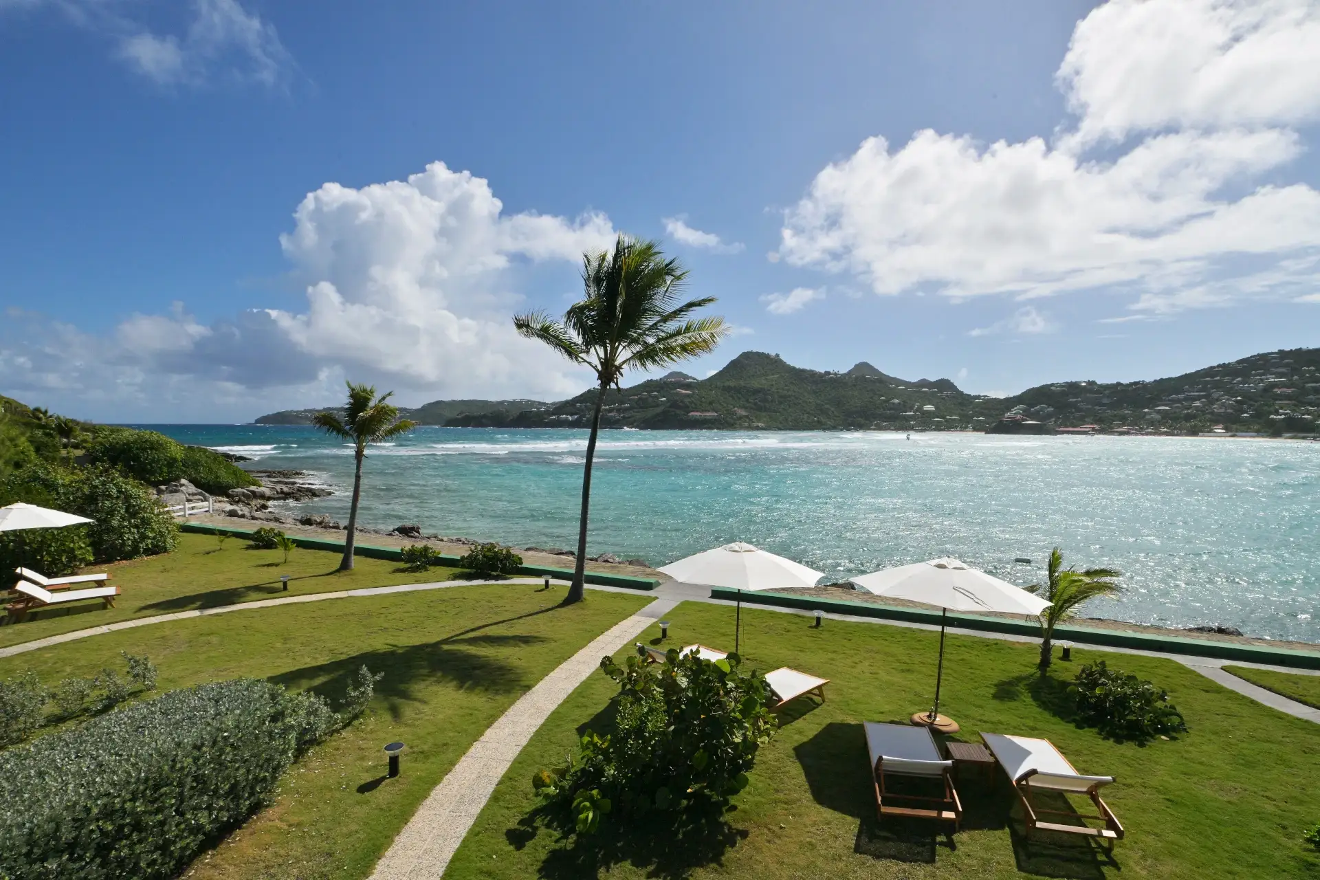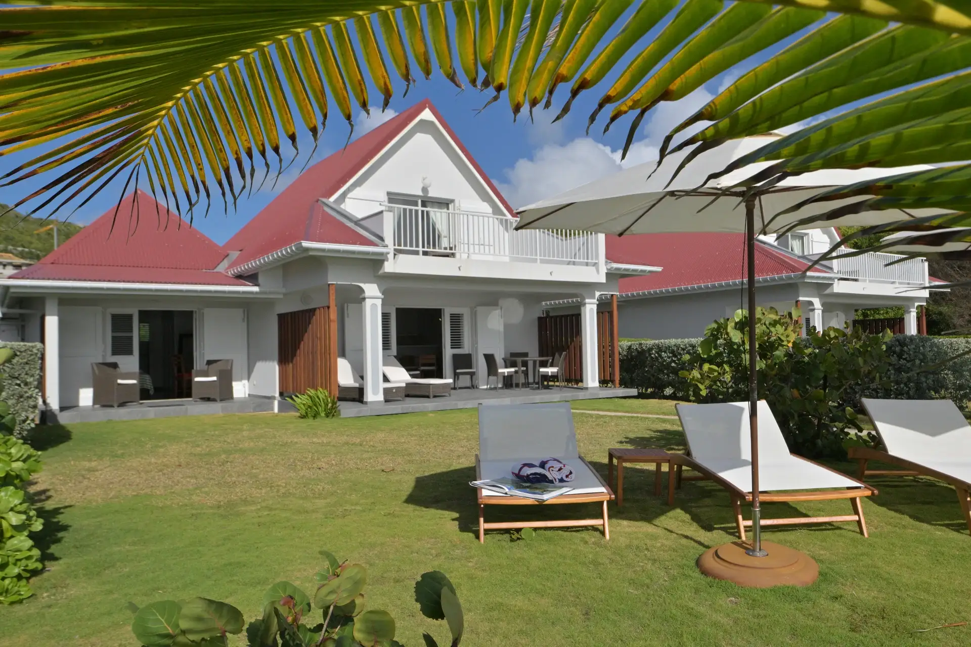 There is also a lovely front yard with lounge chairs. The villa is within easy walking access to St. Jean Beach where beach chairs await.