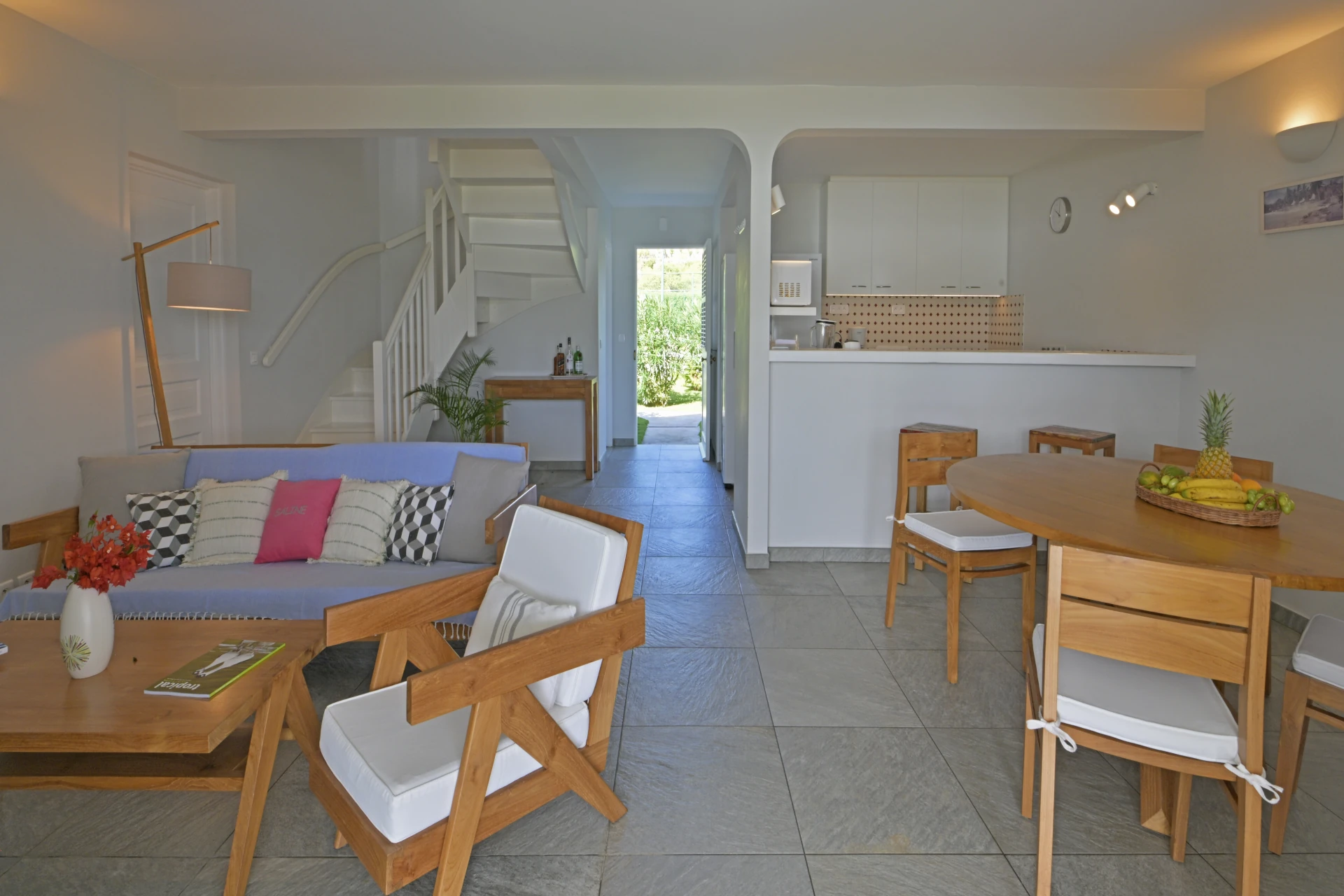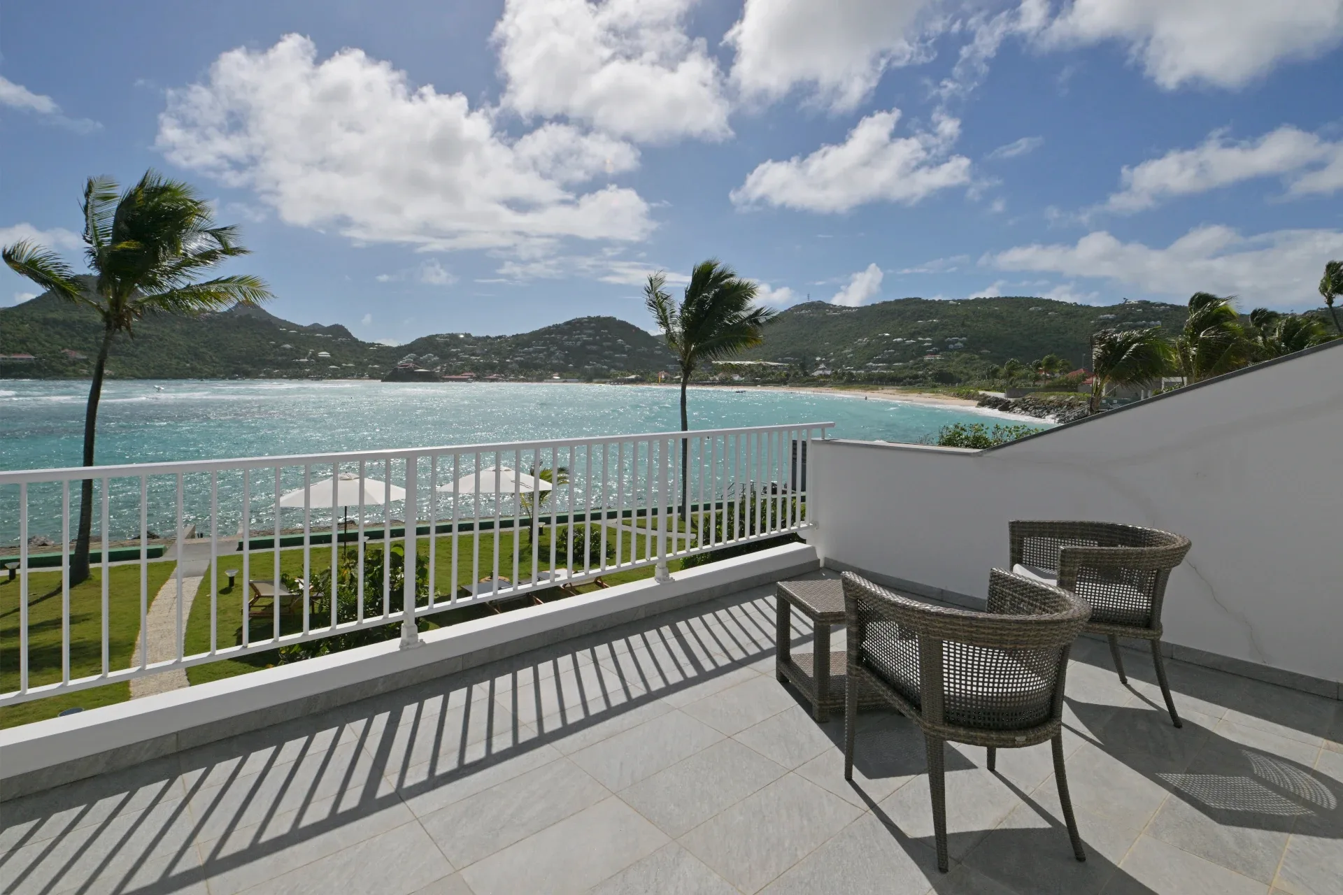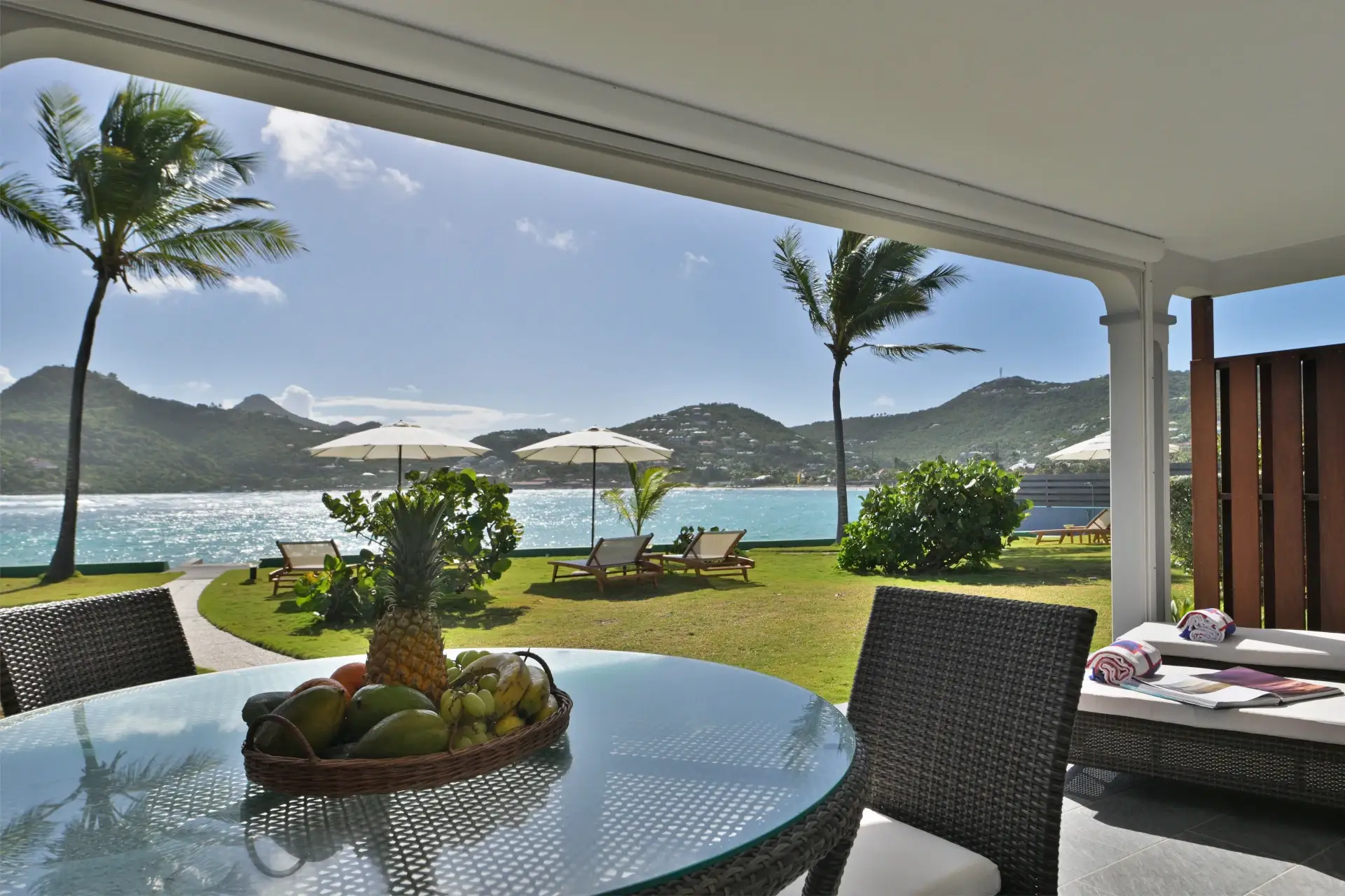 There is also a lovely front yard with lounge chairs. The villa is within easy walking access to St. Jean Beach where beach chairs await.