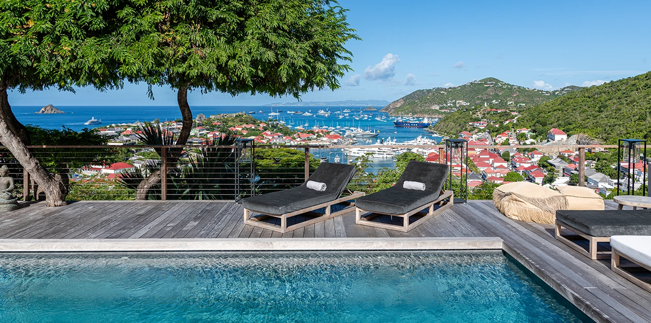 Castaway to Villa Serenity (villa code: WV LJF), a 4-bedroom villa located in Gustavia, capital of St. Barts. This hillside villa pairs the convenience of the city with the privacy and luxury of a villa, enjoying spectacular sunsets and views over the harbor.