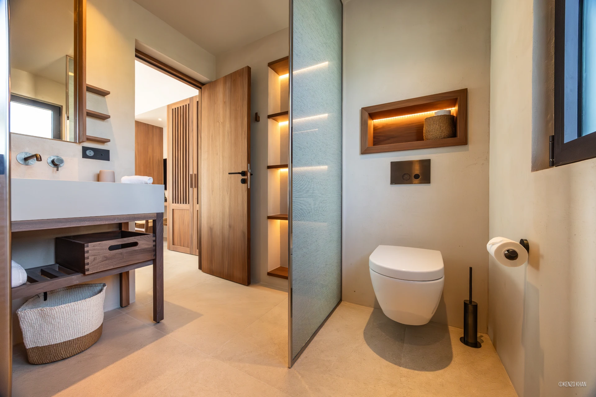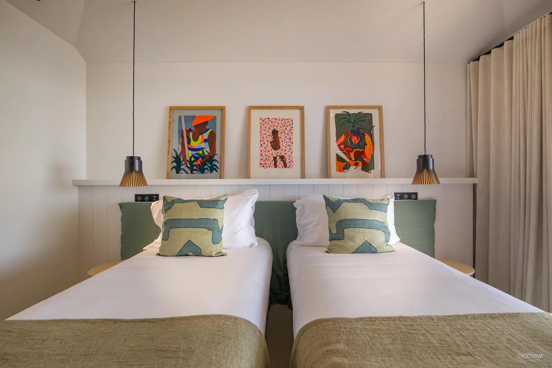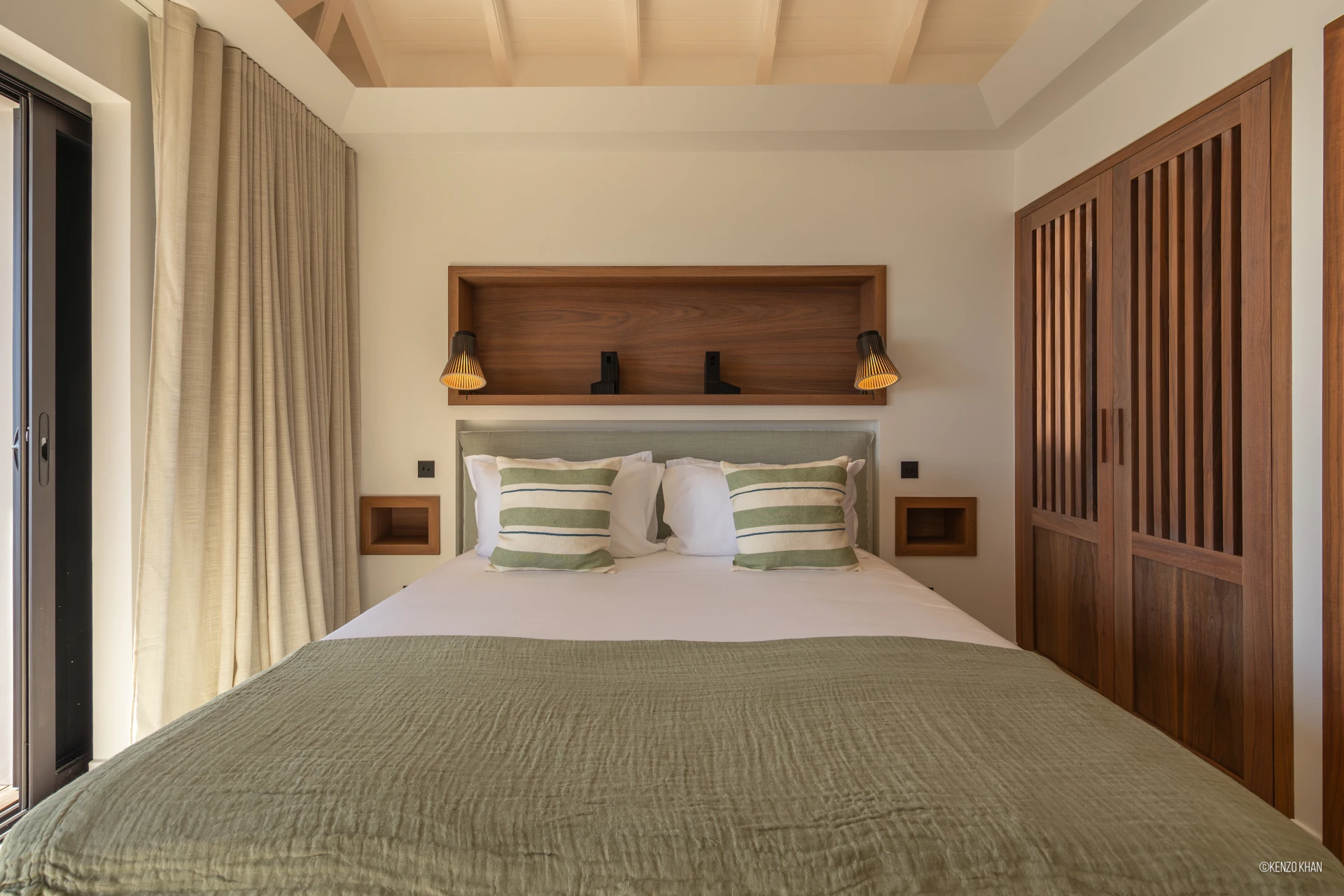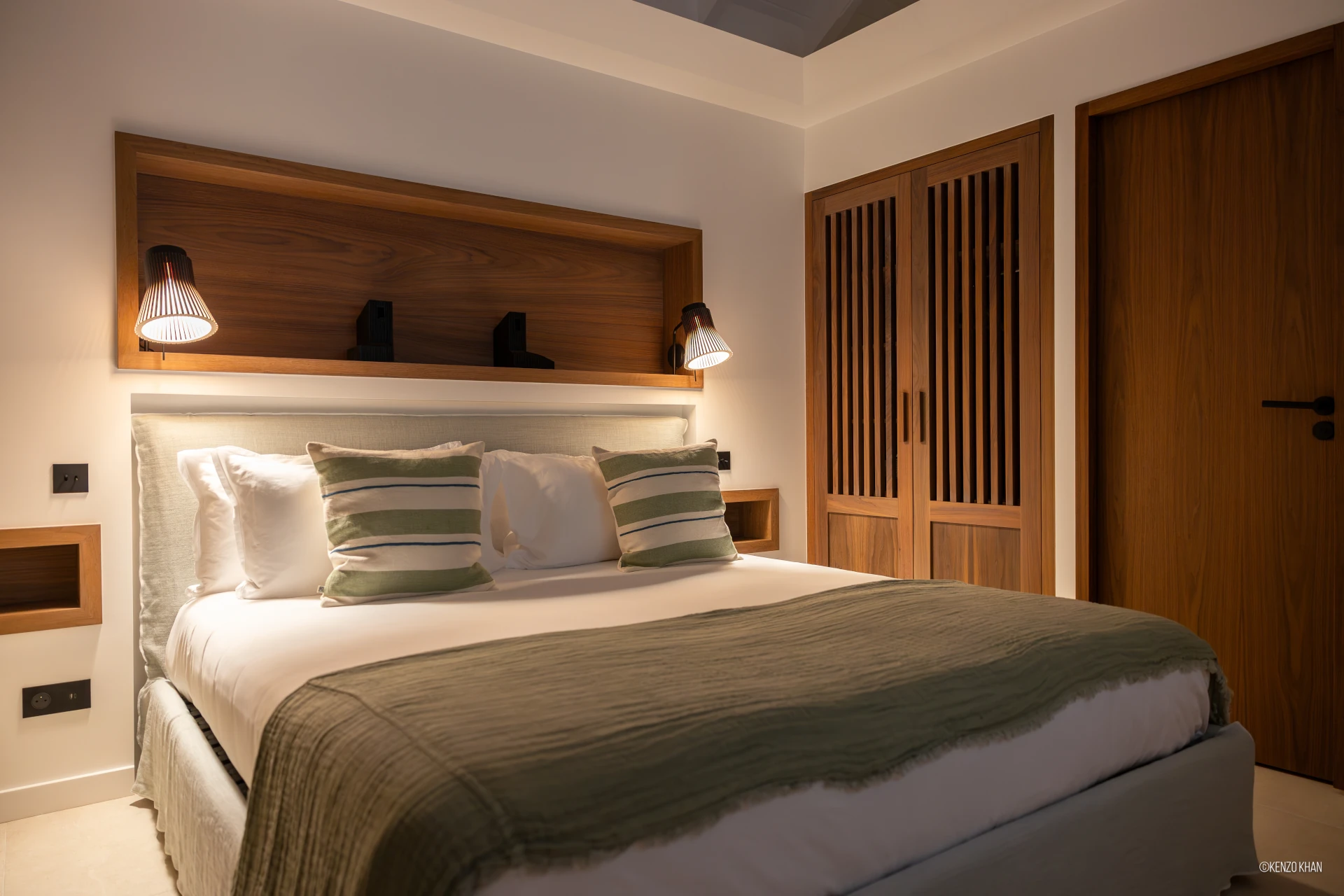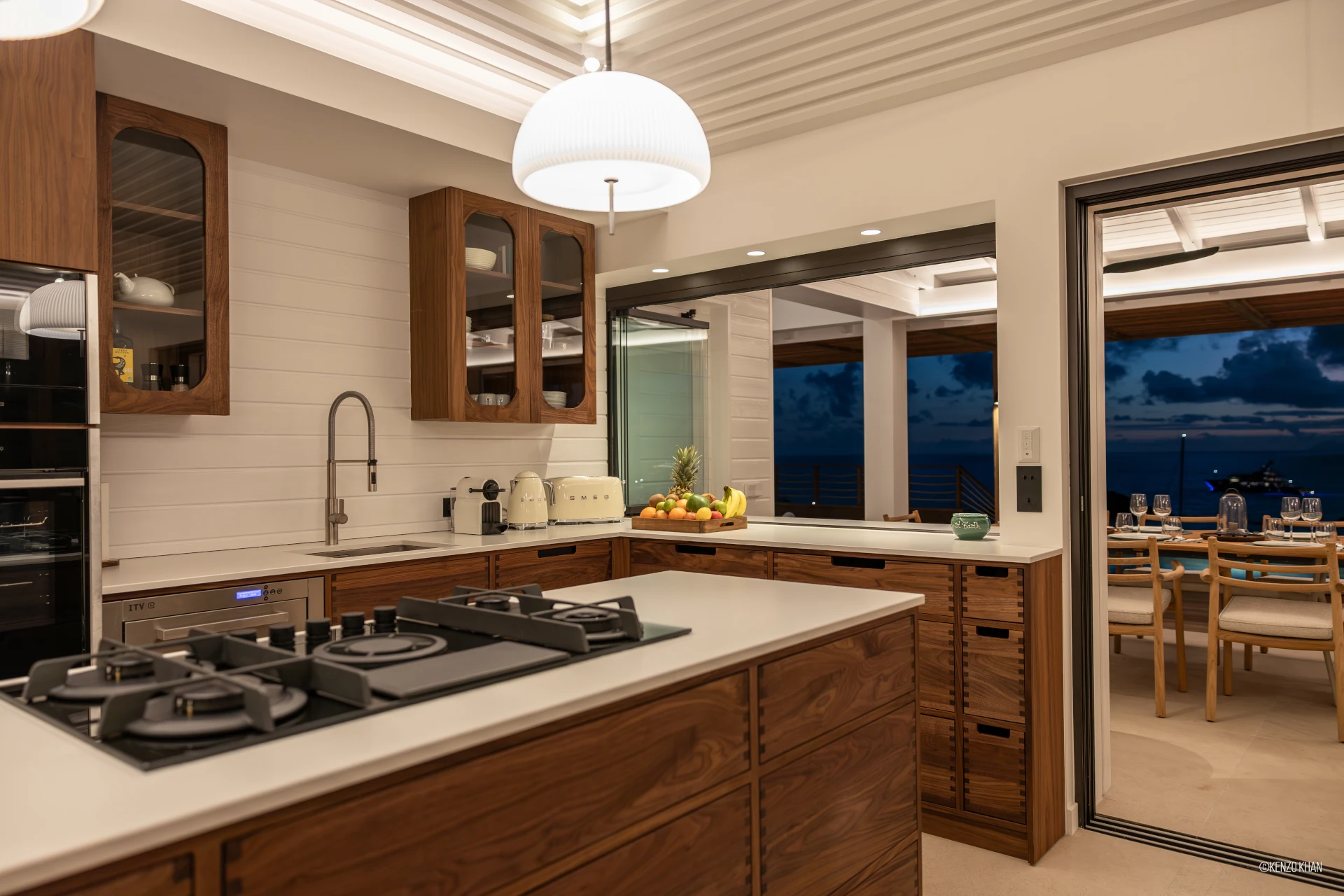 The villa features two equal-size bedrooms, one with a king bed and the other with a king or 2 twin beds, and each have their own ensuite bathroom, both facing the ocean. Each bedroom has an independent exterior access, ensuring comfort and privacy for every guest. Fully air-conditioned throughout, the living spaces include a bright living/TV room open to the kitchen, creating a warm and convivial setting ideal for sharing relaxed moments together.