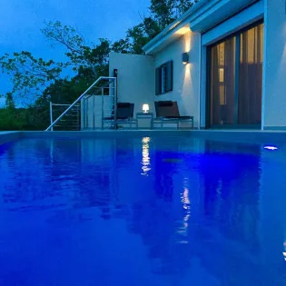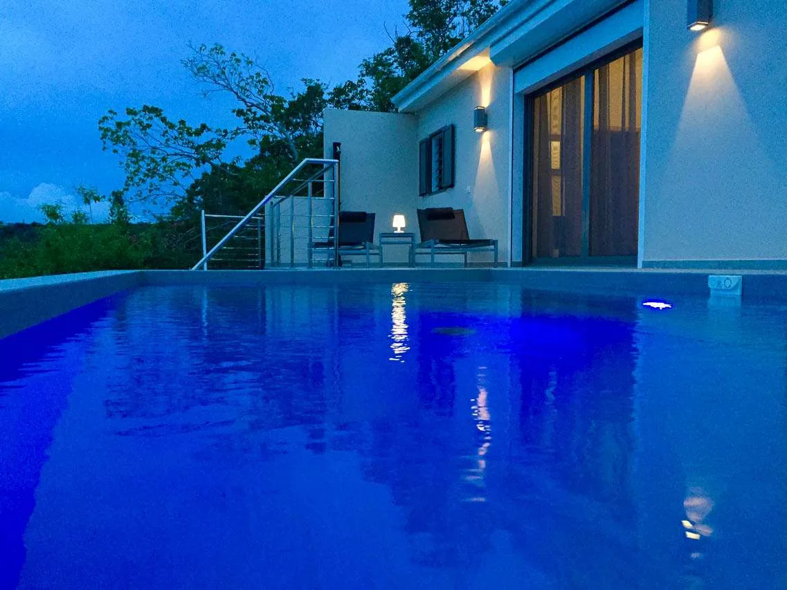 The outdoor space at Villa Suite Acajous offers great privacy and benefits from the panoramic views. The terrace has seating in sun and shade and a good-sized pool for refreshing dips. Outdoor speakers also let you soundtrack a lazy day by the pool, admiring the verdant green hills and the shimmering Caribbean.
