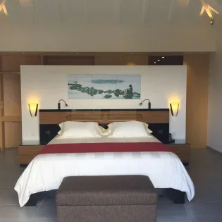 There’s a lavish king-sized bed here, and another TV with satellite channels for watching movies from underneath the covers. There’s also a large ensuite bathroom with a walk-in shower.