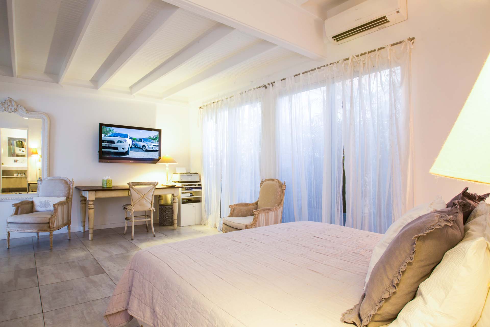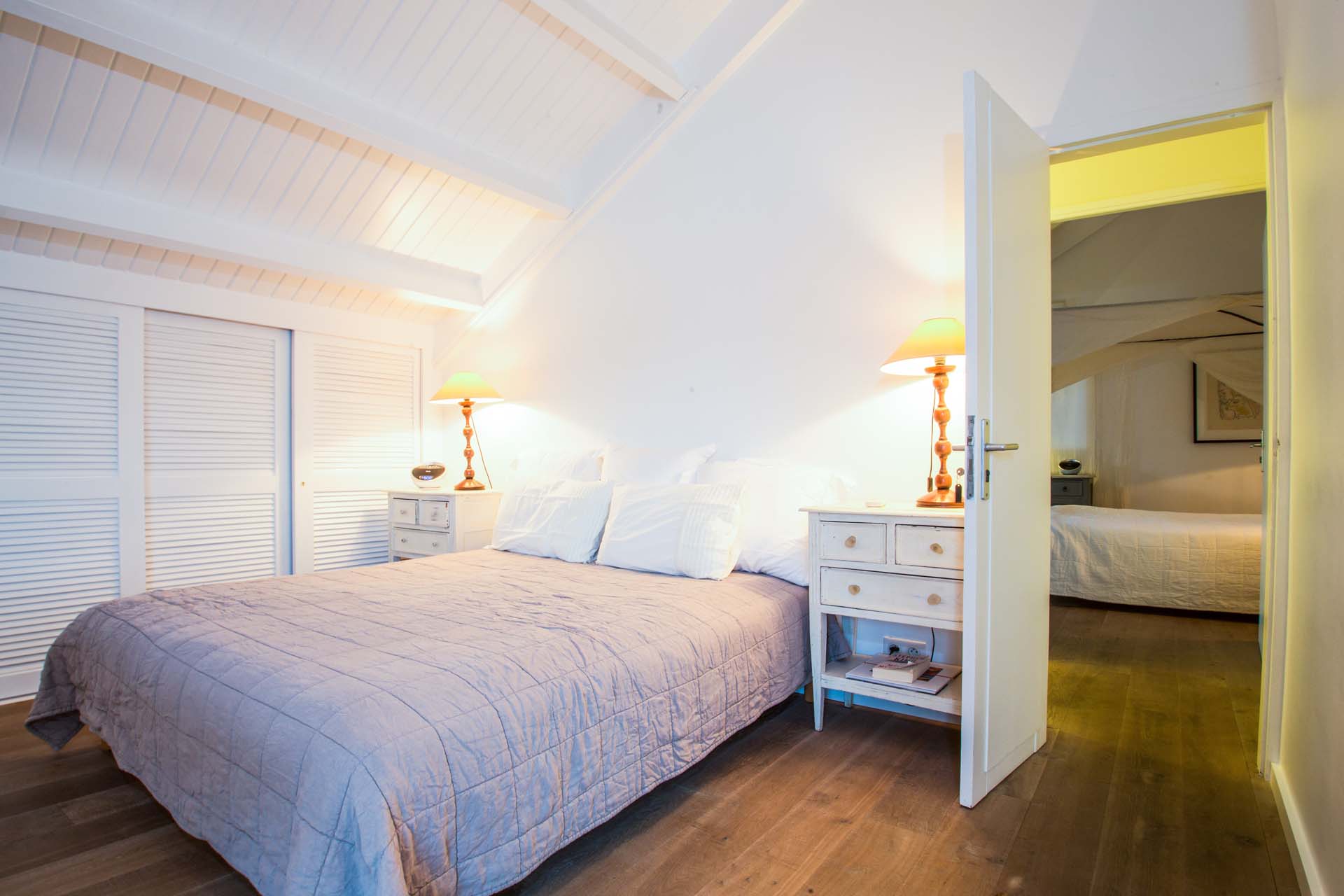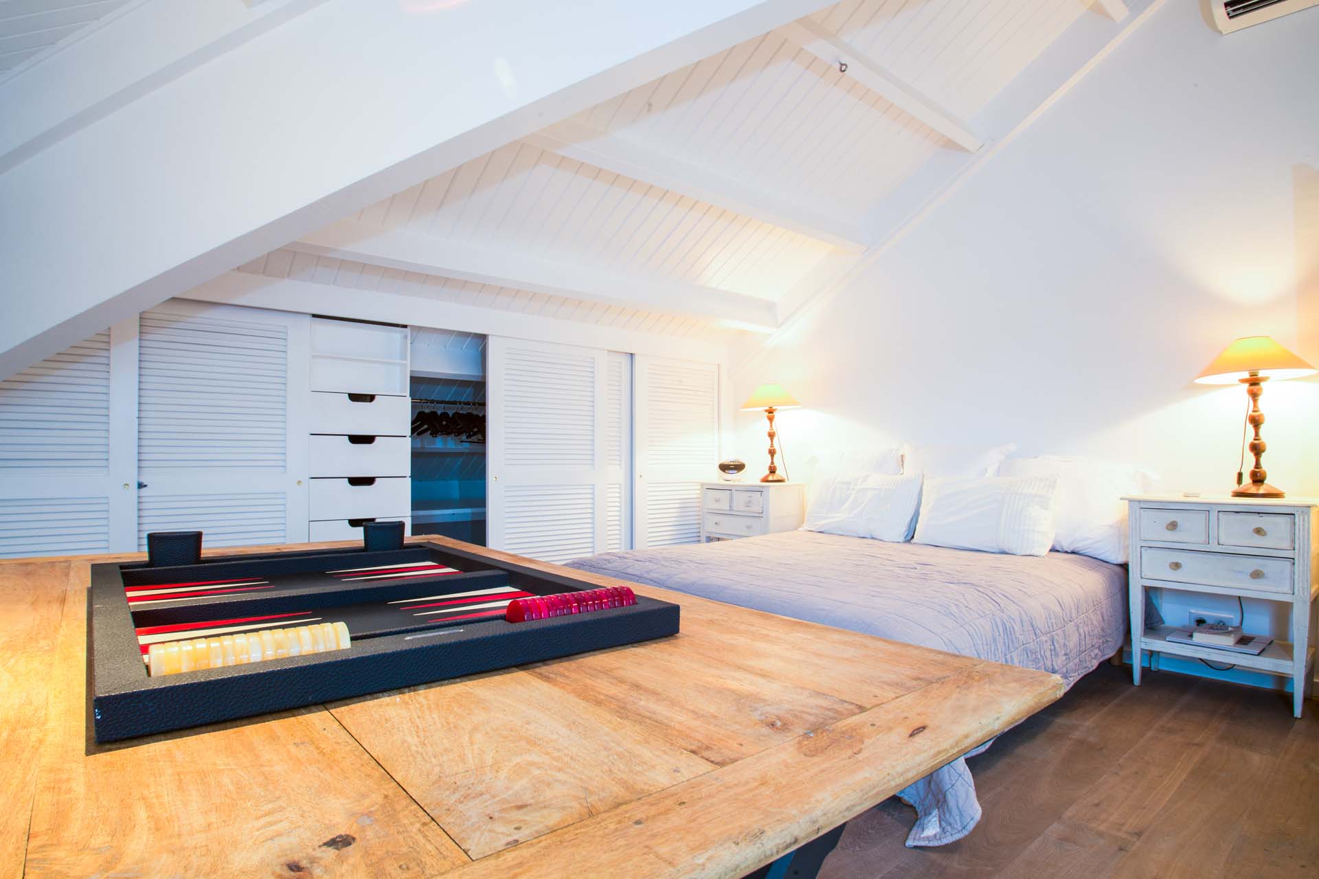 From the main room, doors open wide onto a private balcony with seating. After a long day at the beach or exploring Gustavia, there’s nothing quite like relaxing here with a drink, settling in to admire the rosy gold sunset unfolding across the sea and sky.